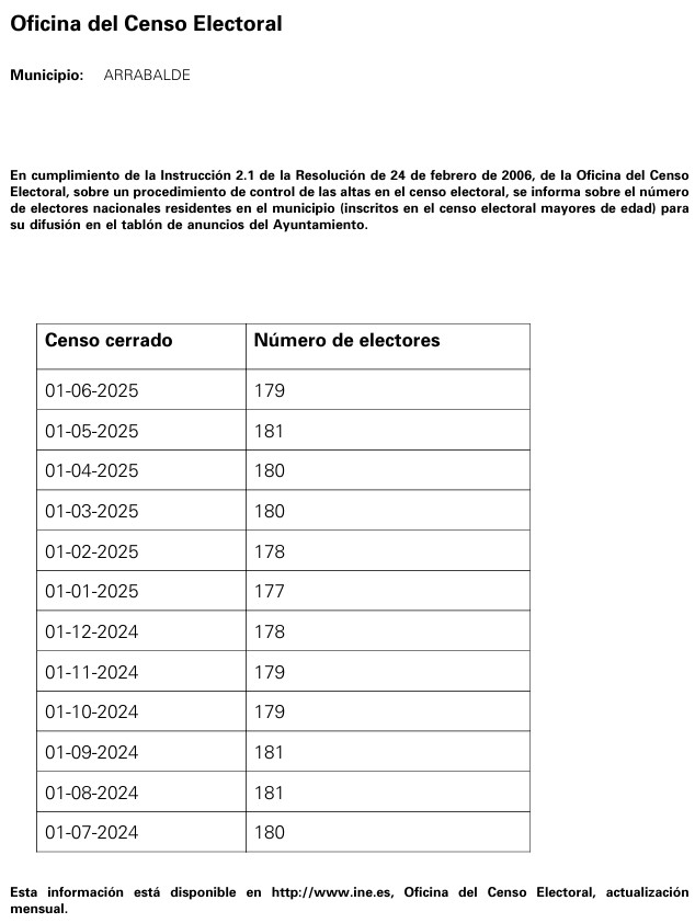 El nº de electores al 1 de Julio de 2025 es de 179.