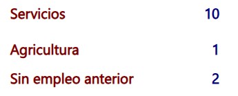 servicios 10, agricultura 1, y sin empleo anterior 2 .