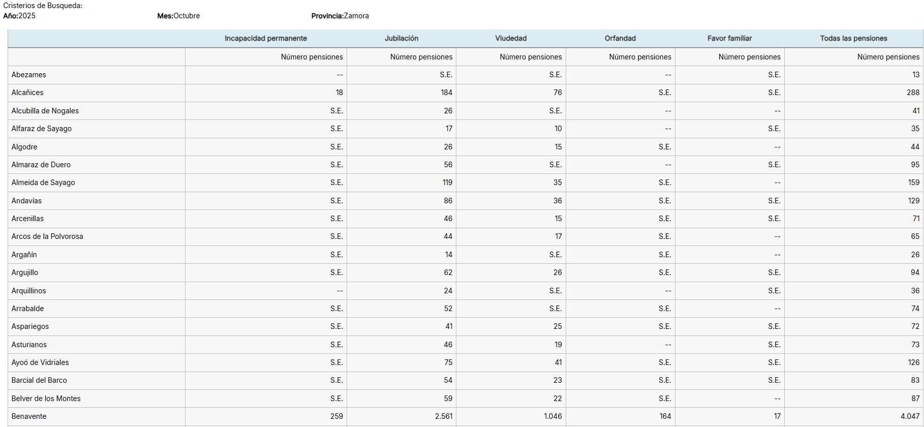 y pensión media. El nº de