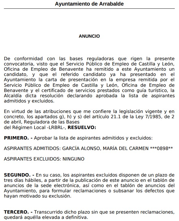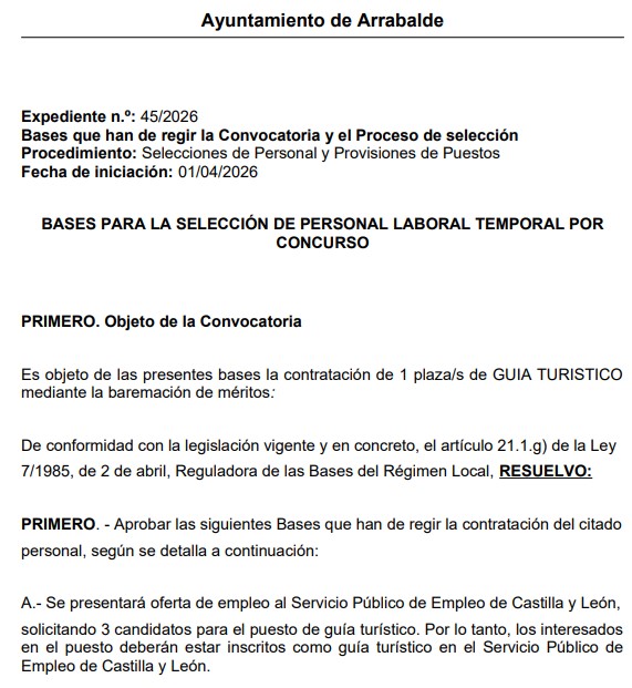 publicita el concurso (convocatoria) para cubrir la Plaza de Guía