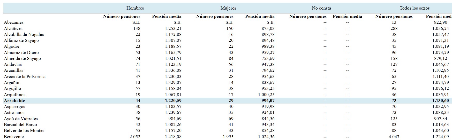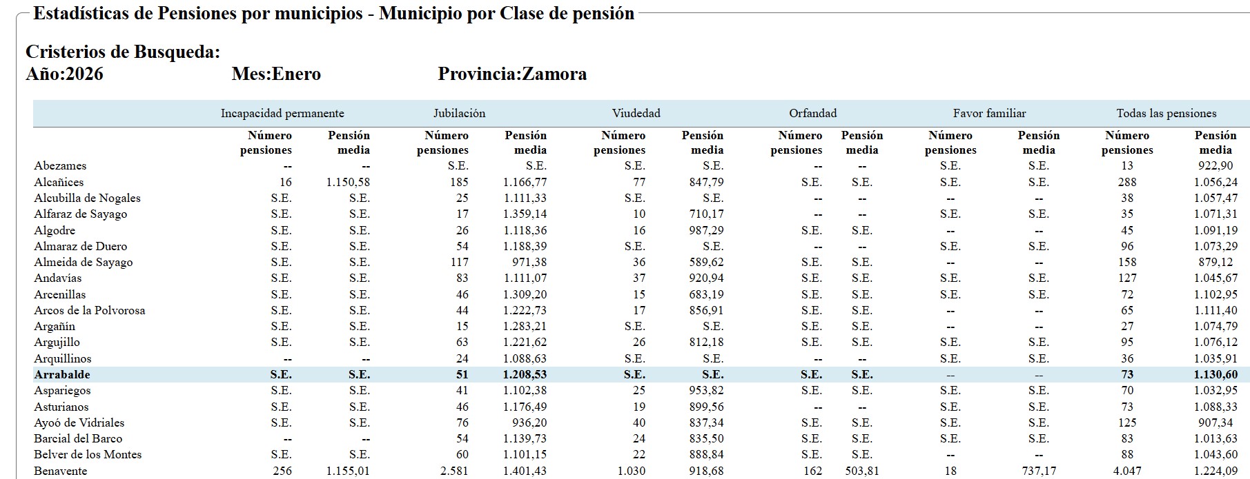 número de pensionistas es Arrabalde actualizadas al mes de Enero es de 73