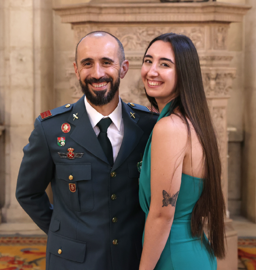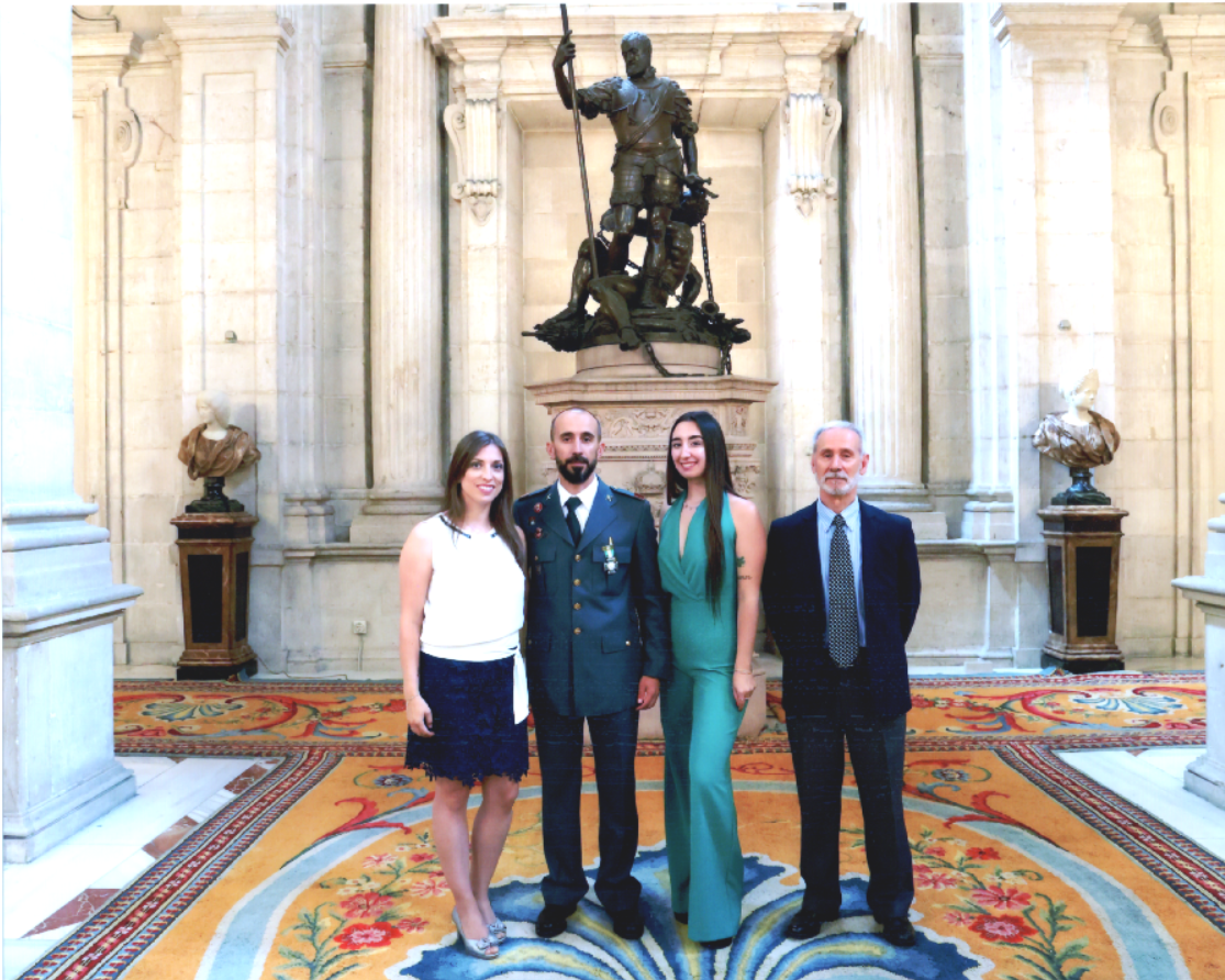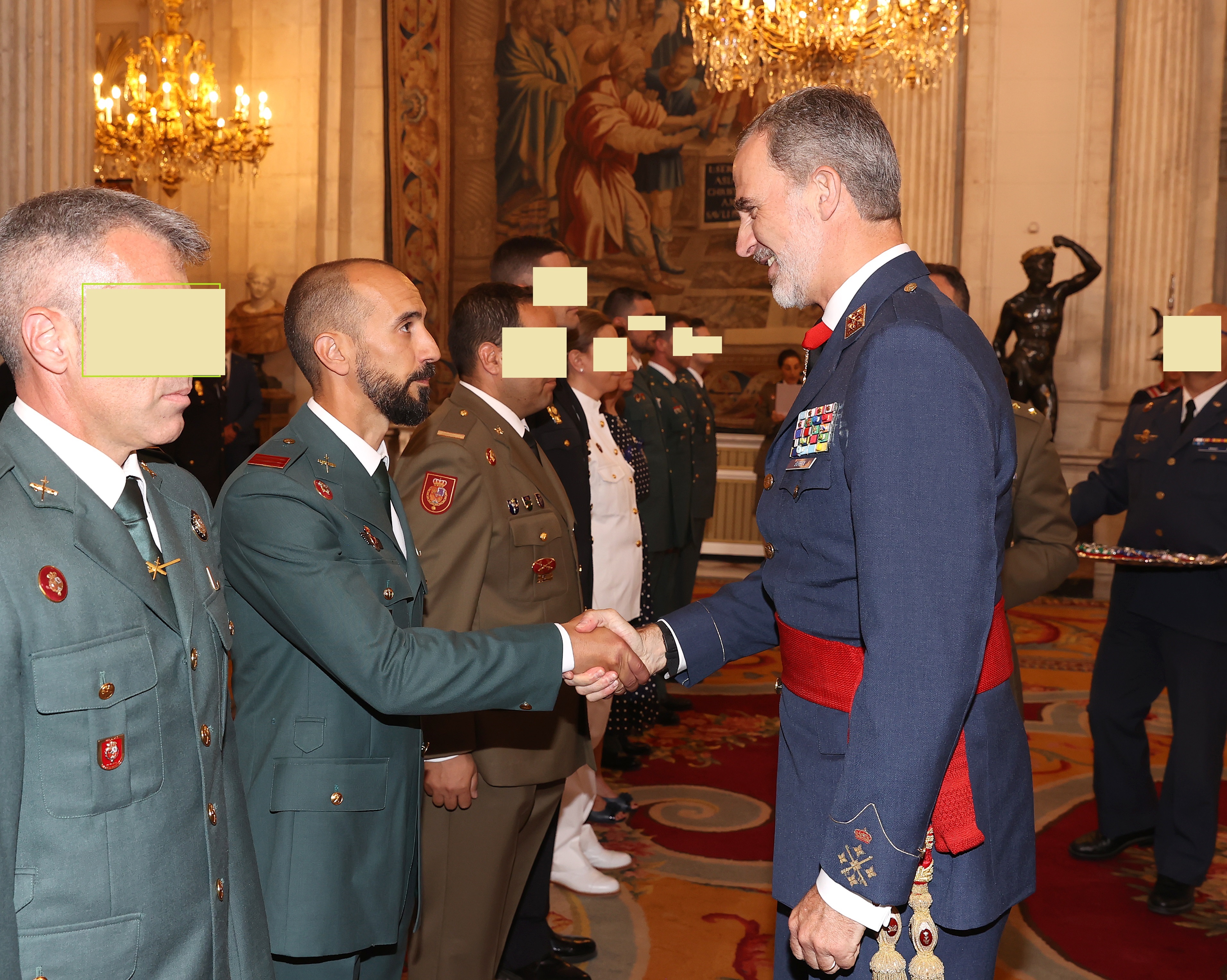 Con motivo de la imposición de medallas se ofreció un acto institucional, donde los familiares de los condecorados asistimos como invitados. Tras la imposición de medallas Su Majestad el Rey Felipe VI tuvo la grata deferencia de saludarnos a todos, dejando un grato recuerdo. Posteriormente se ofreció un vino y un aperitivo. Un acto con mucho protocolo, pero entrañable, emotivo y familiar. En esta ocasión a mi hijo Gustavo se le impuso la Medalla al "Mérito Militar de la Guardia Civil". En aplicación del Real Decreto 967/2021 por el que se regula el uso de imágenes con el uniforme de la Guardia Civil en las redes sociales, omito la publicación en las mismas, pero si me autorizan a ponerlas en mi página Web personal, siempre que no sea de acceso abierto al público en general. |