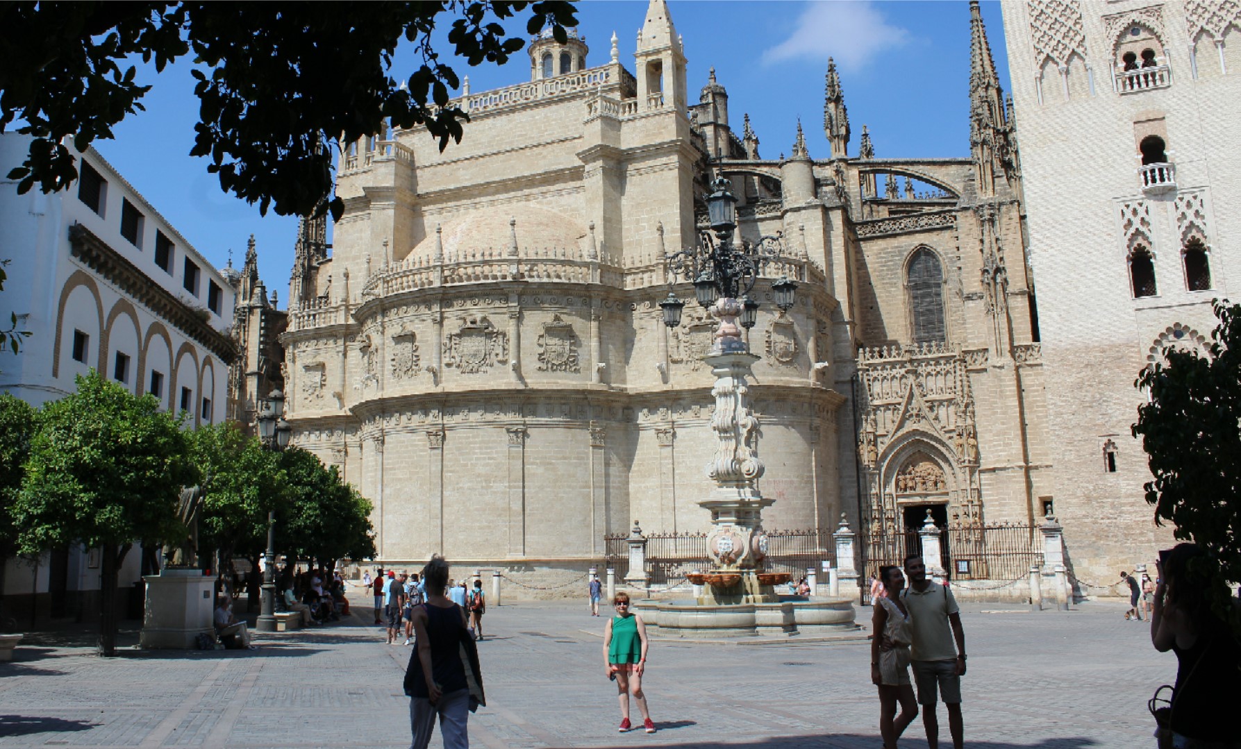 Giralda es el nombre que recibe la torre campanario de la catedral de Santa María de la Sede de la ciudad de Sevilla, en Andalucía (España). La parte inferior de la torre corresponde al alminar de la antigua mezquita de la ciudad, de finales del siglo XII, en la época almohade, mientras que la parte superior es una construcción sobrepuesta en el siglo XVI, en época cristiana, para albergar las campanas. En su cúspide se halla la estatua de bronce que representa el Triunfo de la Fe y que tiene función de veleta, el Giraldillo. La Giralda se edificó en el año 1172. En 1184 se iniciaron las obras de su alminar, lo que terminaría siendo la Giralda de Sevilla. Esta construcción fue iniciada por el Califa Abu Yabub Yusuf y, para ello, se utilizaron piedras de antiguas construcciones romanas. La estructura continuó después creciendo a base de ladrillos.