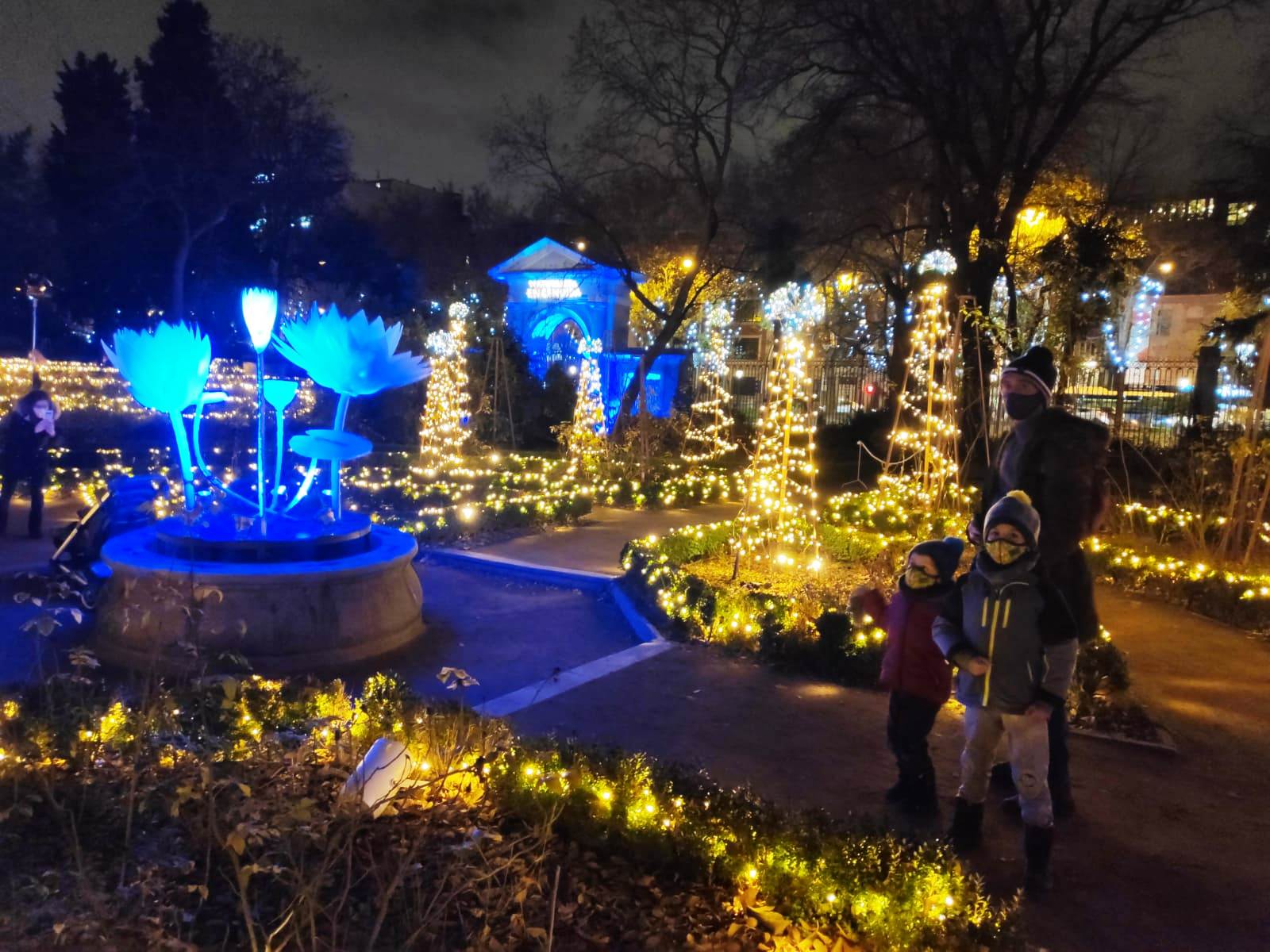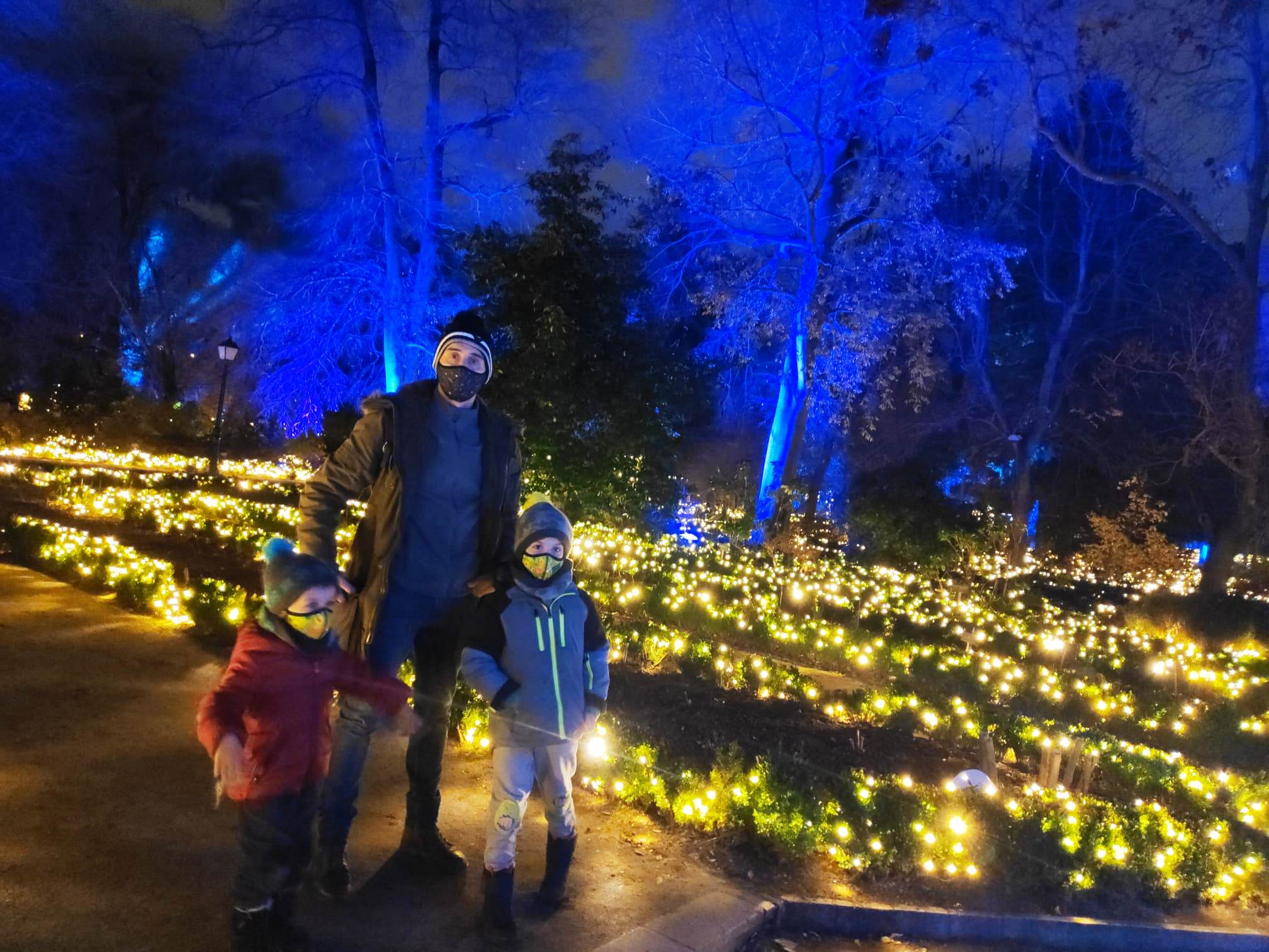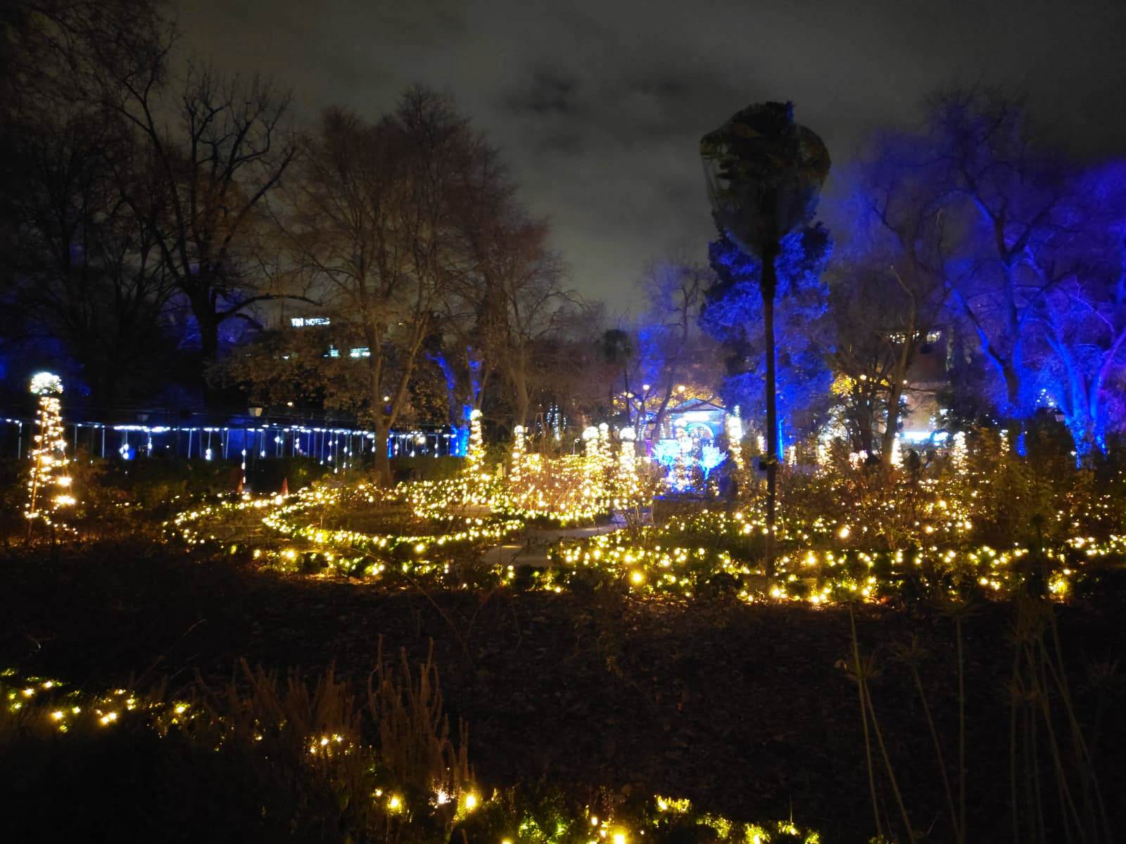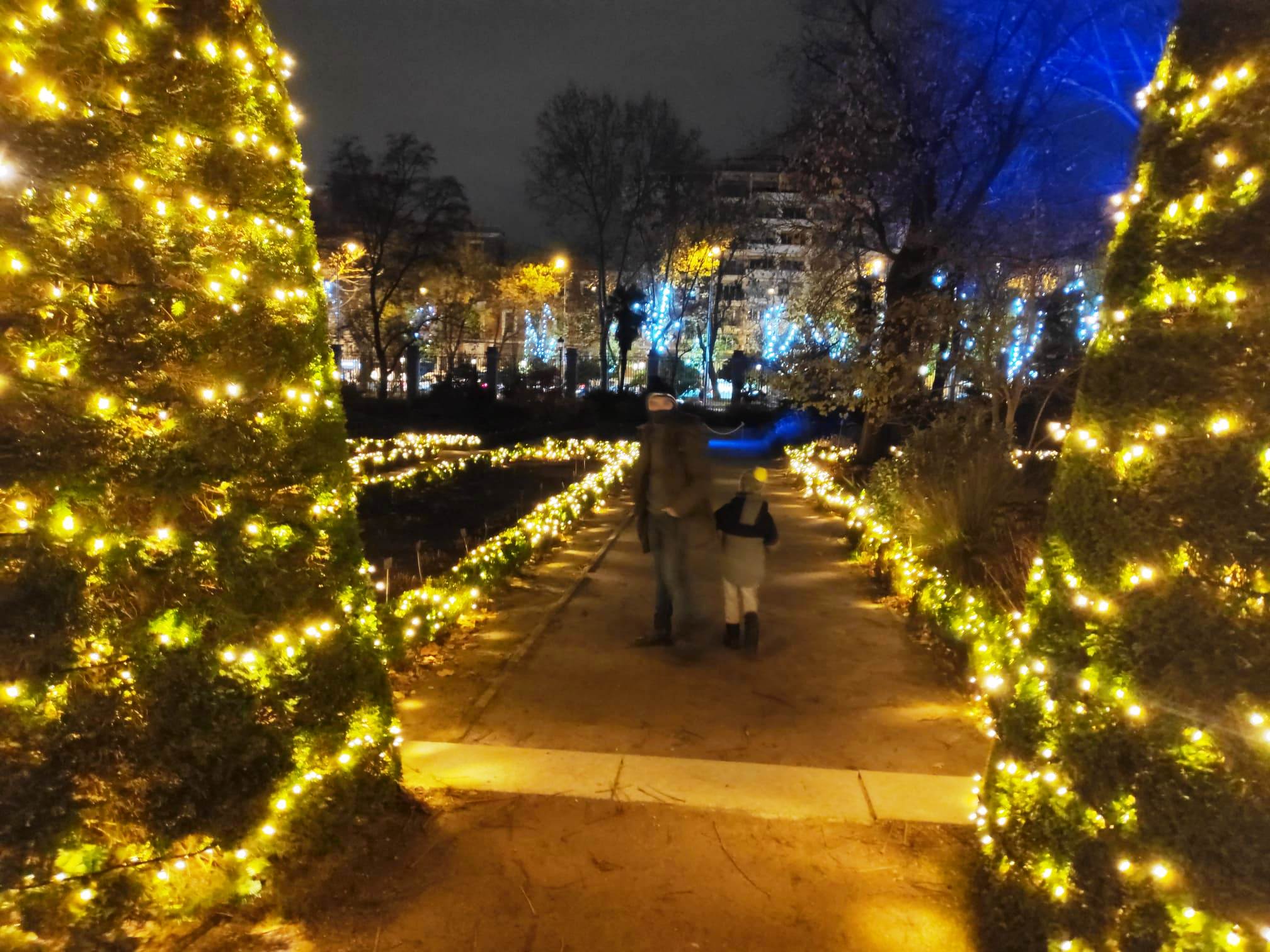 En el centro de Madrid existe un recogido lugar donde todavía es posible disfrutar de la naturaleza y de la calma. El Real Jardín Botánico es una caja de sorpresas para quien se acerque a él, porque está repleto de hermosos rincones que contemplan más de dos siglos de historia. Además este singular espacio introduce al visitante en el conocimiento de una ciencia con largos años de tradición como es la Botánica. Las imágenes no tienen buena calidad, pues se han hecho con el móvil y de noche, pero da una idea general del espectáculo iluminado en navidad. |