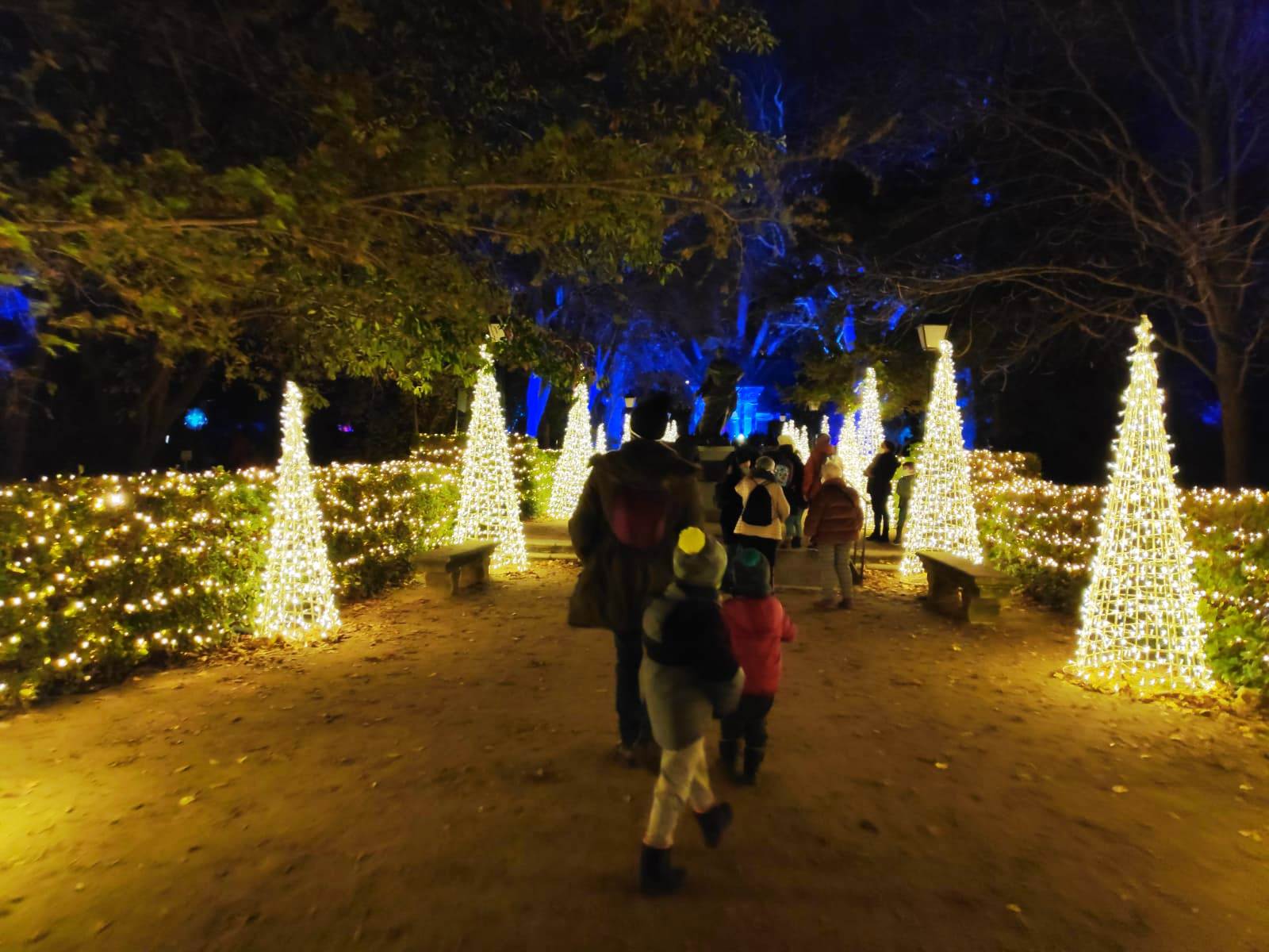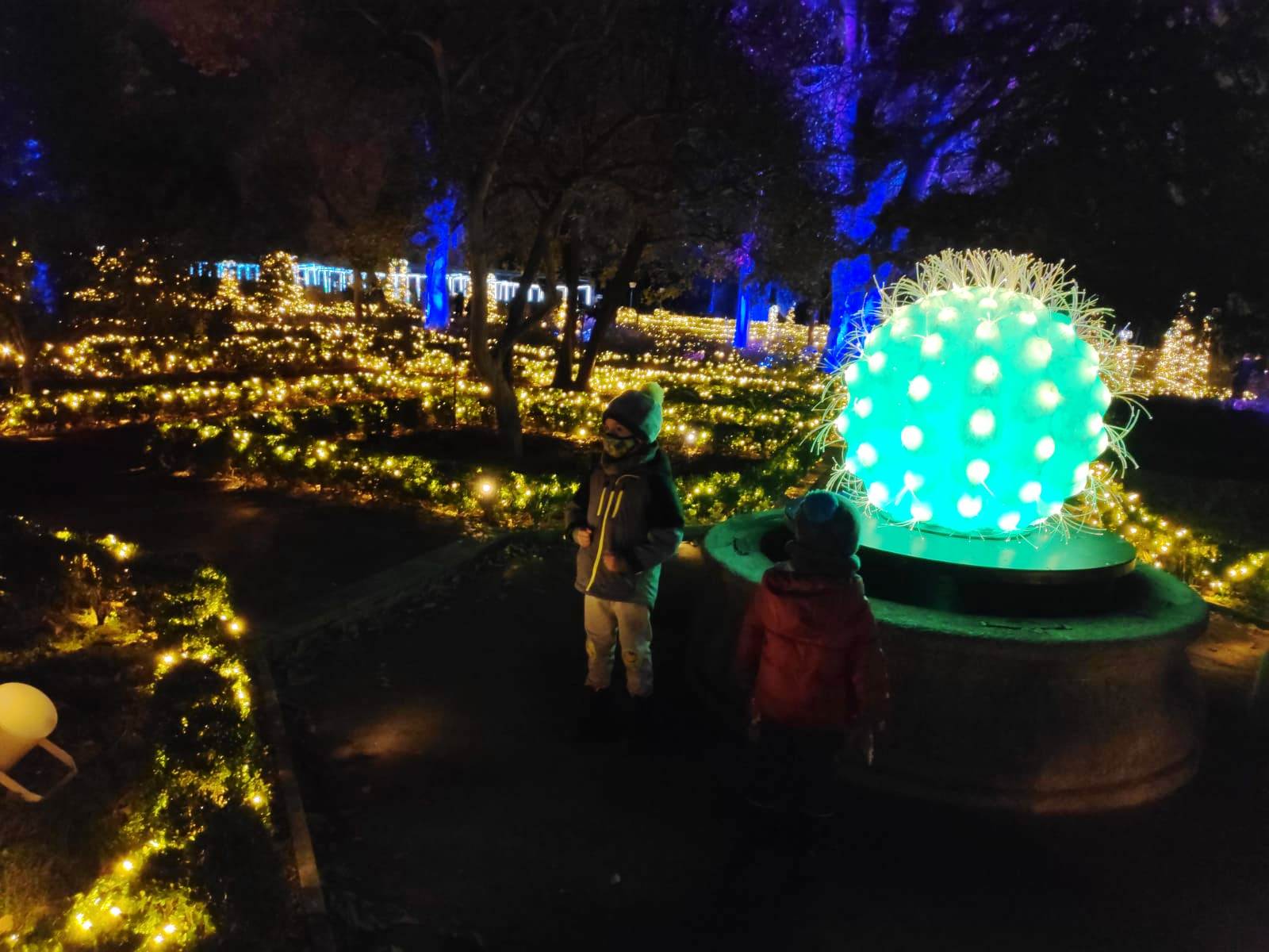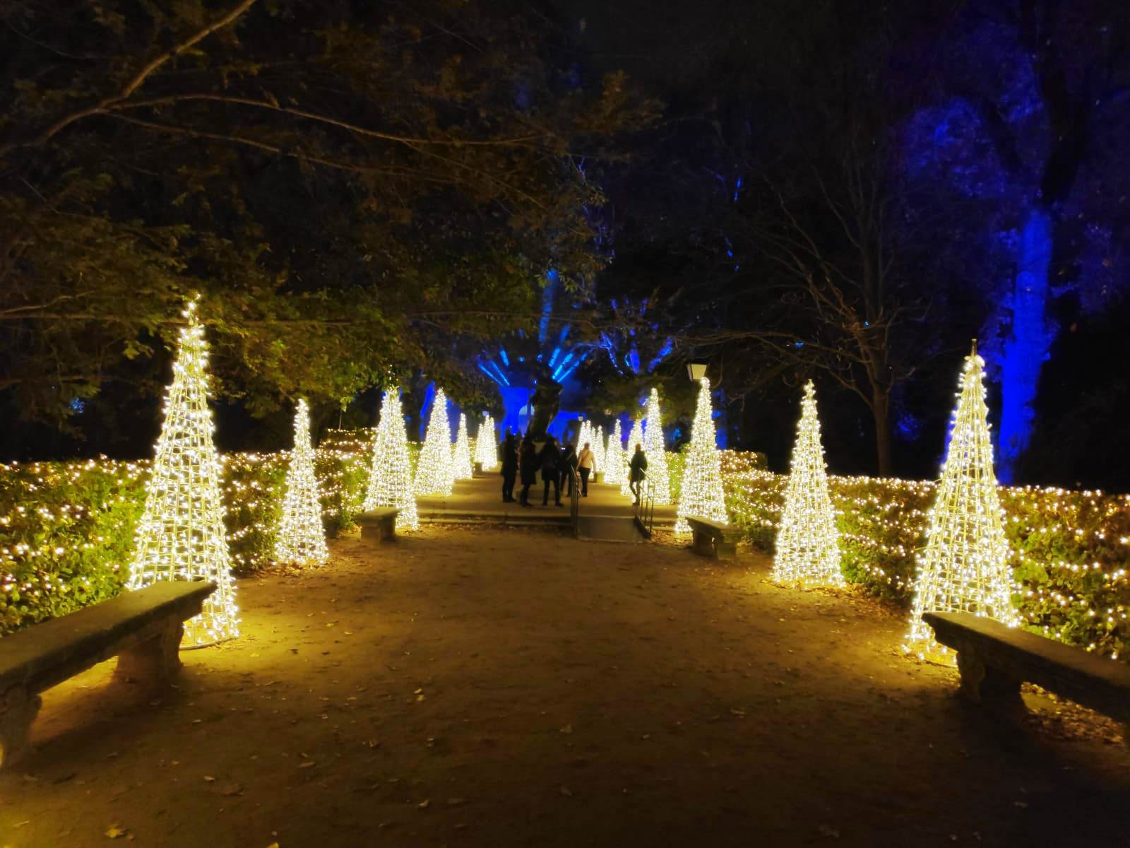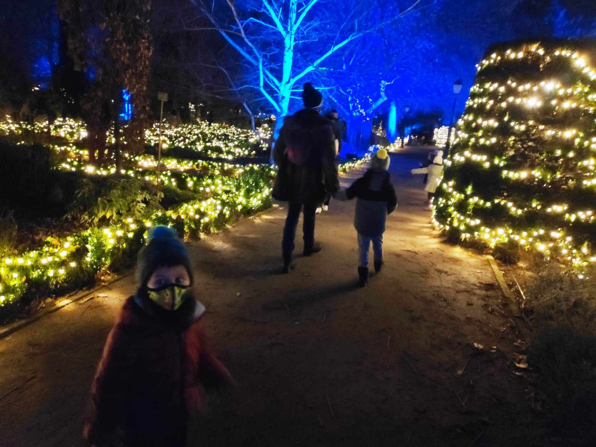 En el centro de Madrid existe un recogido lugar donde todavía es posible disfrutar de la naturaleza y de la calma. El Real Jardín Botánico es una caja de sorpresas para quien se acerque a él, porque está repleto de hermosos rincones que contemplan más de dos siglos de historia. Además este singular espacio introduce al visitante en el conocimiento de una ciencia con largos años de tradición como es la Botánica. Las imágenes no tienen buena calidad, pues se han hecho con el móvil y de noche, pero da una idea general del espectáculo iluminado en navidad. |