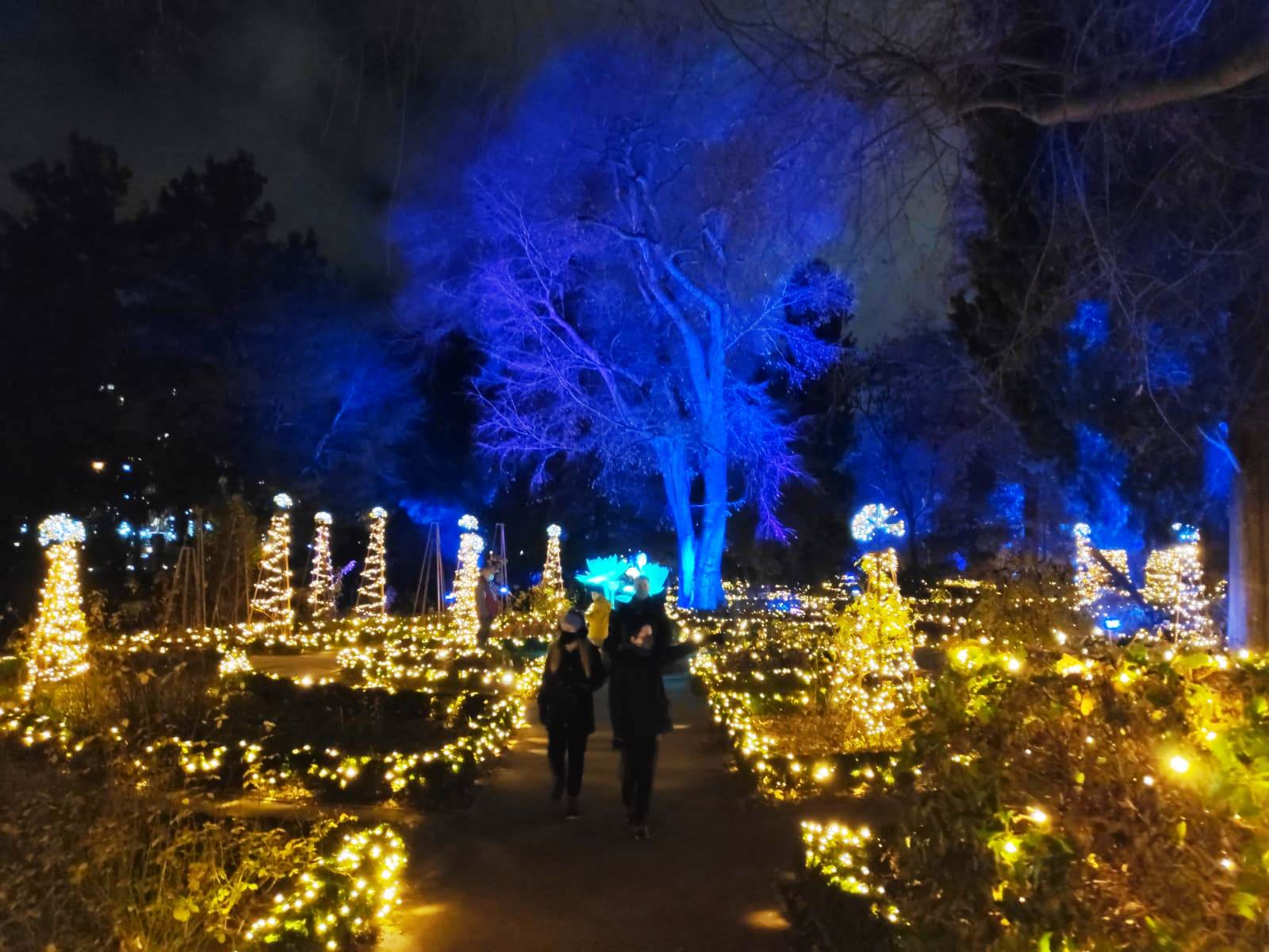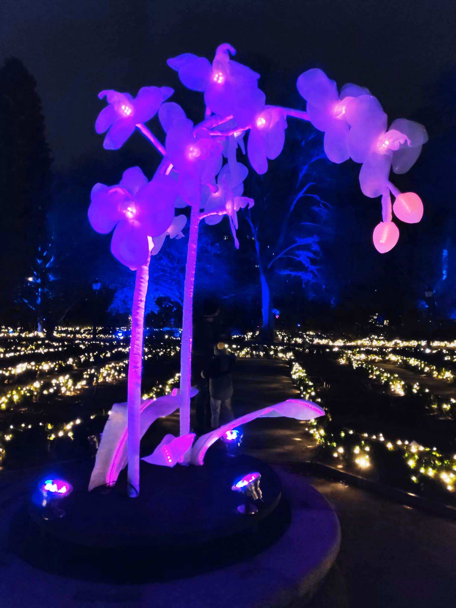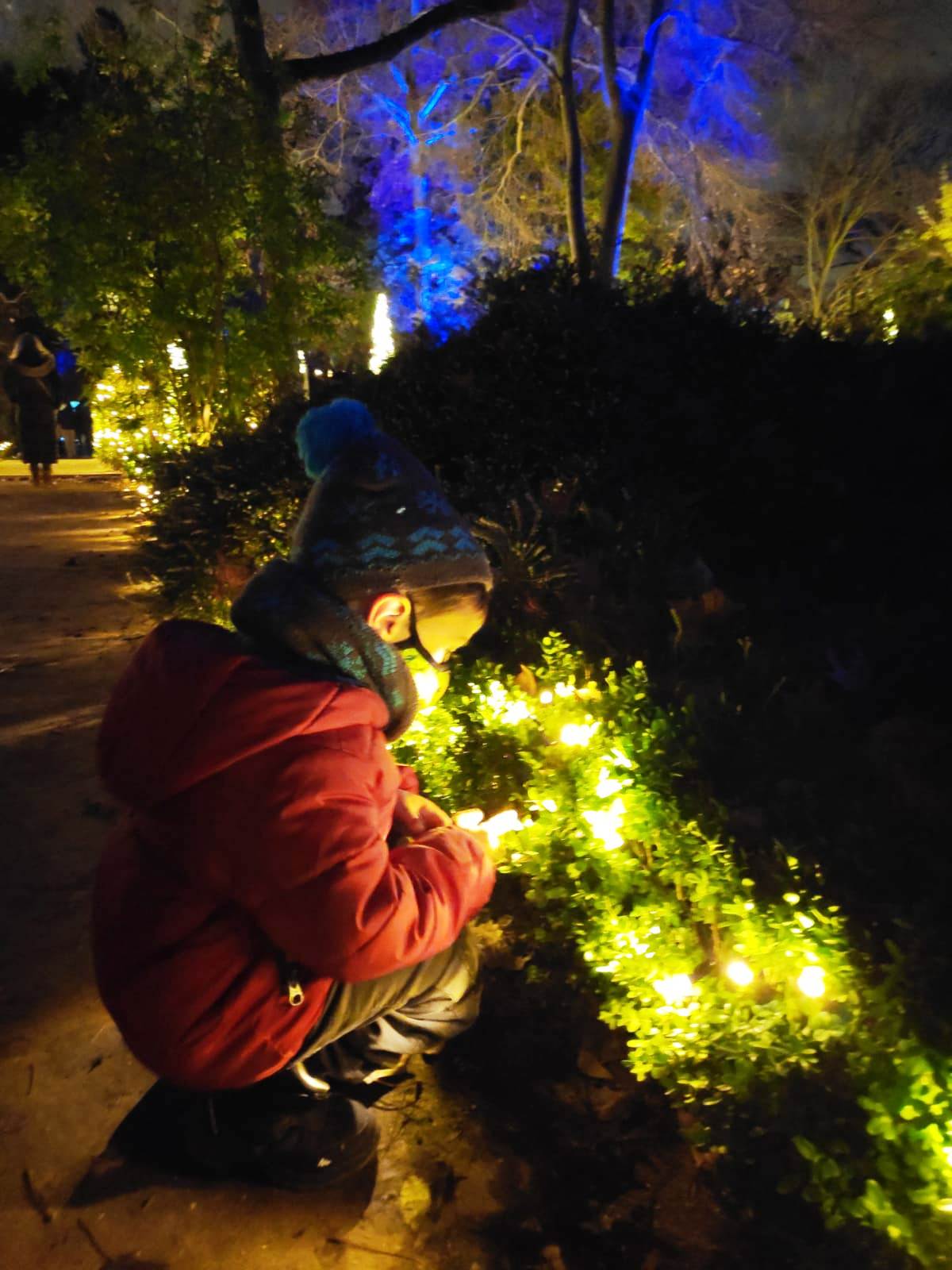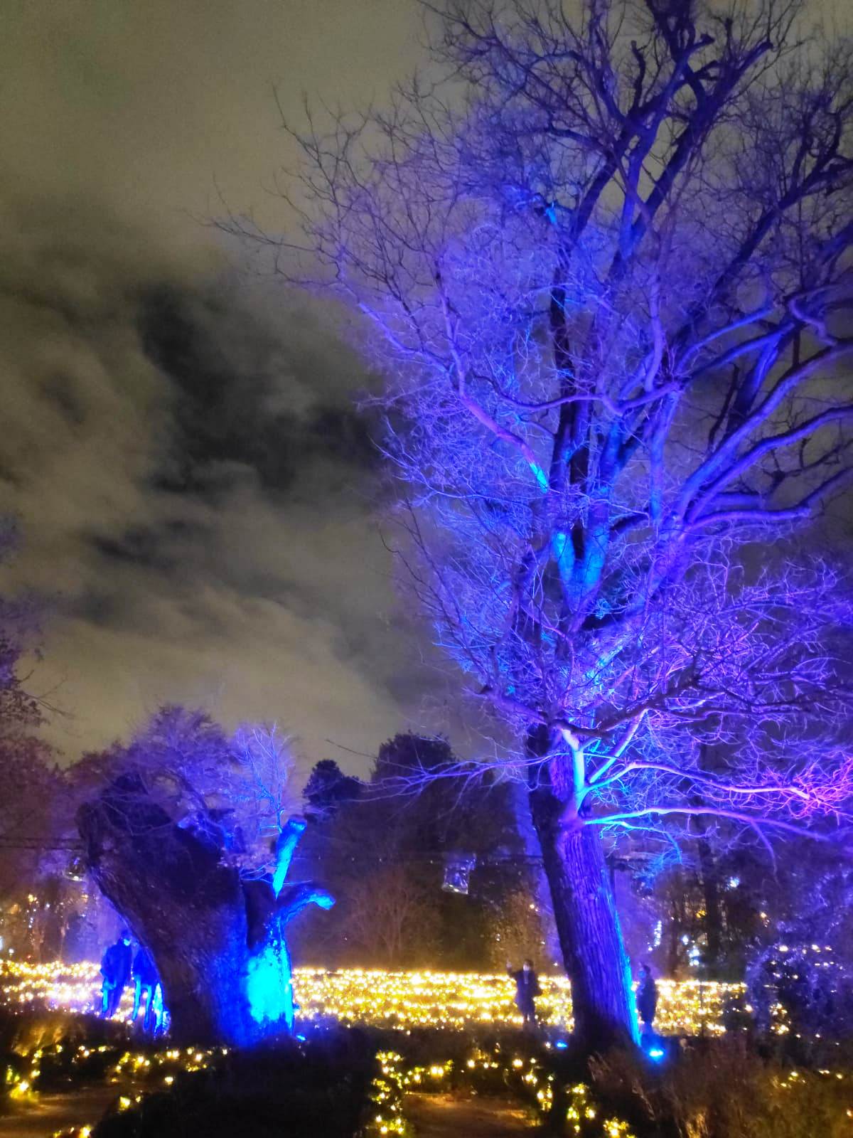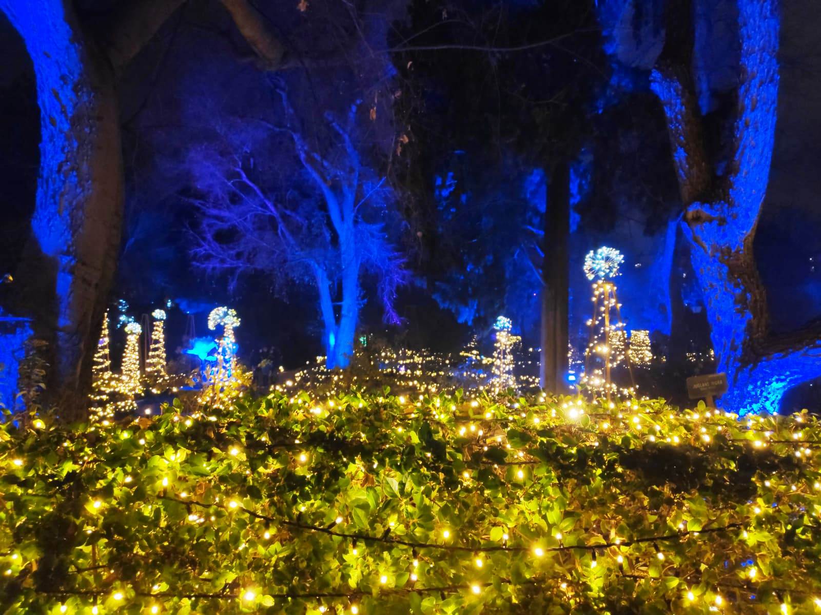En el centro de Madrid existe un recogido lugar donde todavía es posible disfrutar de la naturaleza y de la calma. El Real Jardín Botánico es una caja de sorpresas para quien se acerque a él, porque está repleto de hermosos rincones que contemplan más de dos siglos de historia. Además este singular espacio introduce al visitante en el conocimiento de una ciencia con largos años de tradición como es la Botánica. Las imágenes no tienen buena calidad, pues se han hecho con el móvil y de noche, pero da una idea general del espectáculo iluminado en navidad. |