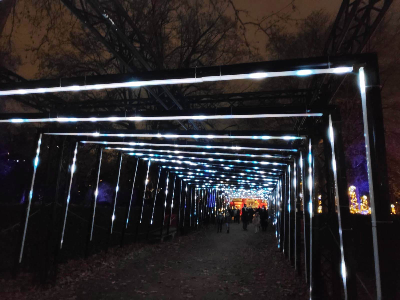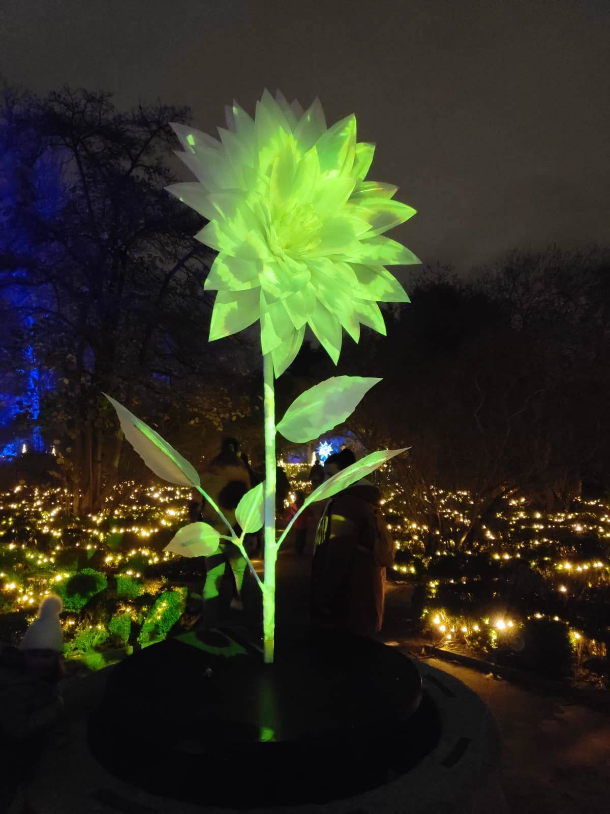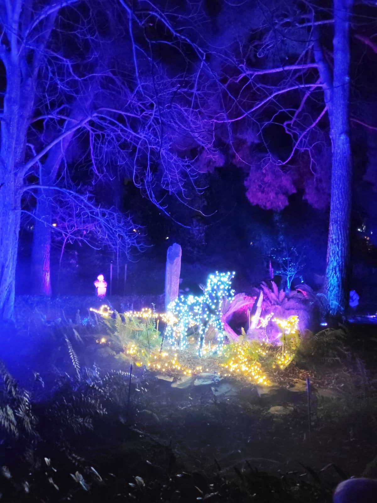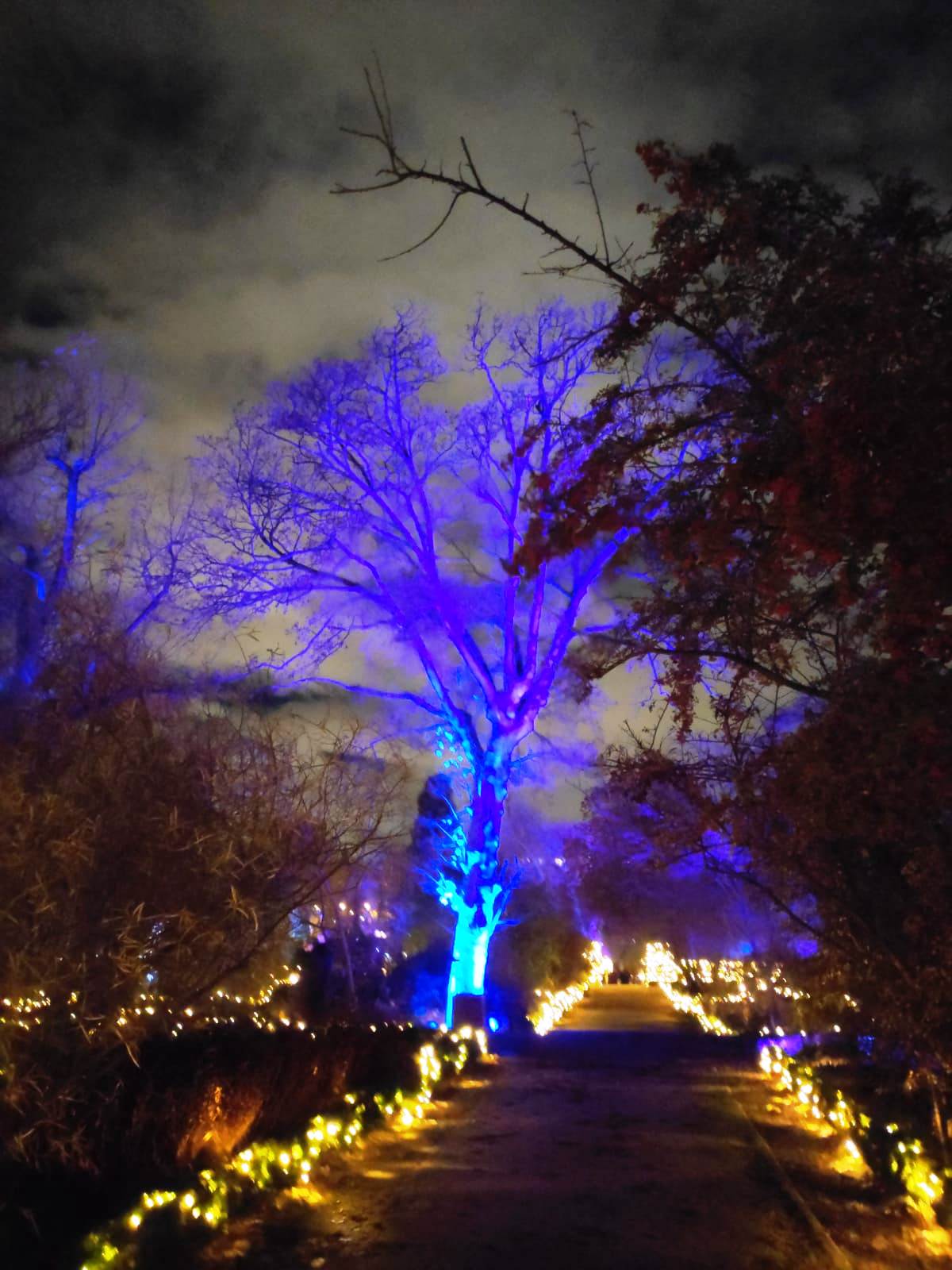 En el centro de Madrid existe un recogido lugar donde todavía es posible disfrutar de la naturaleza y de la calma. El Real Jardín Botánico es una caja de sorpresas para quien se acerque a él, porque está repleto de hermosos rincones que contemplan más de dos siglos de historia. Además este singular espacio introduce al visitante en el conocimiento de una ciencia con largos años de tradición como es la Botánica. Las imágenes no tienen buena calidad, pues se han hecho con el móvil y de noche, pero da una idea general del espectáculo iluminado en navidad. |