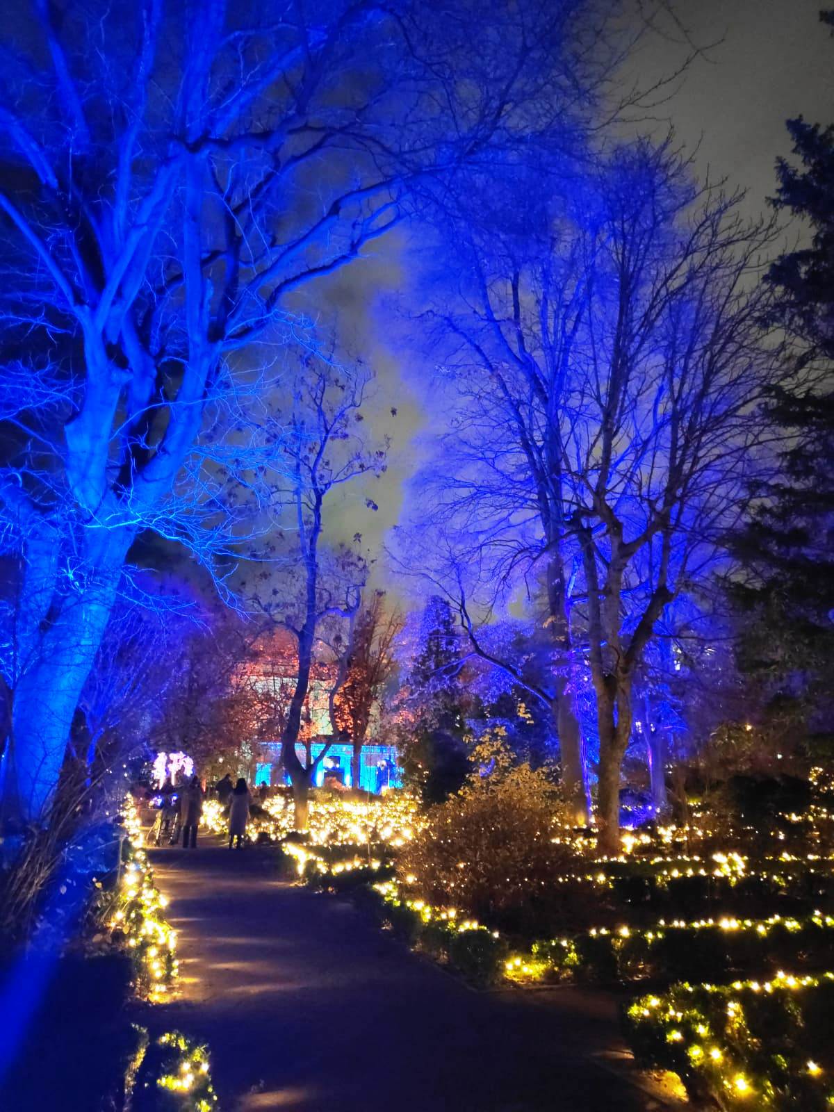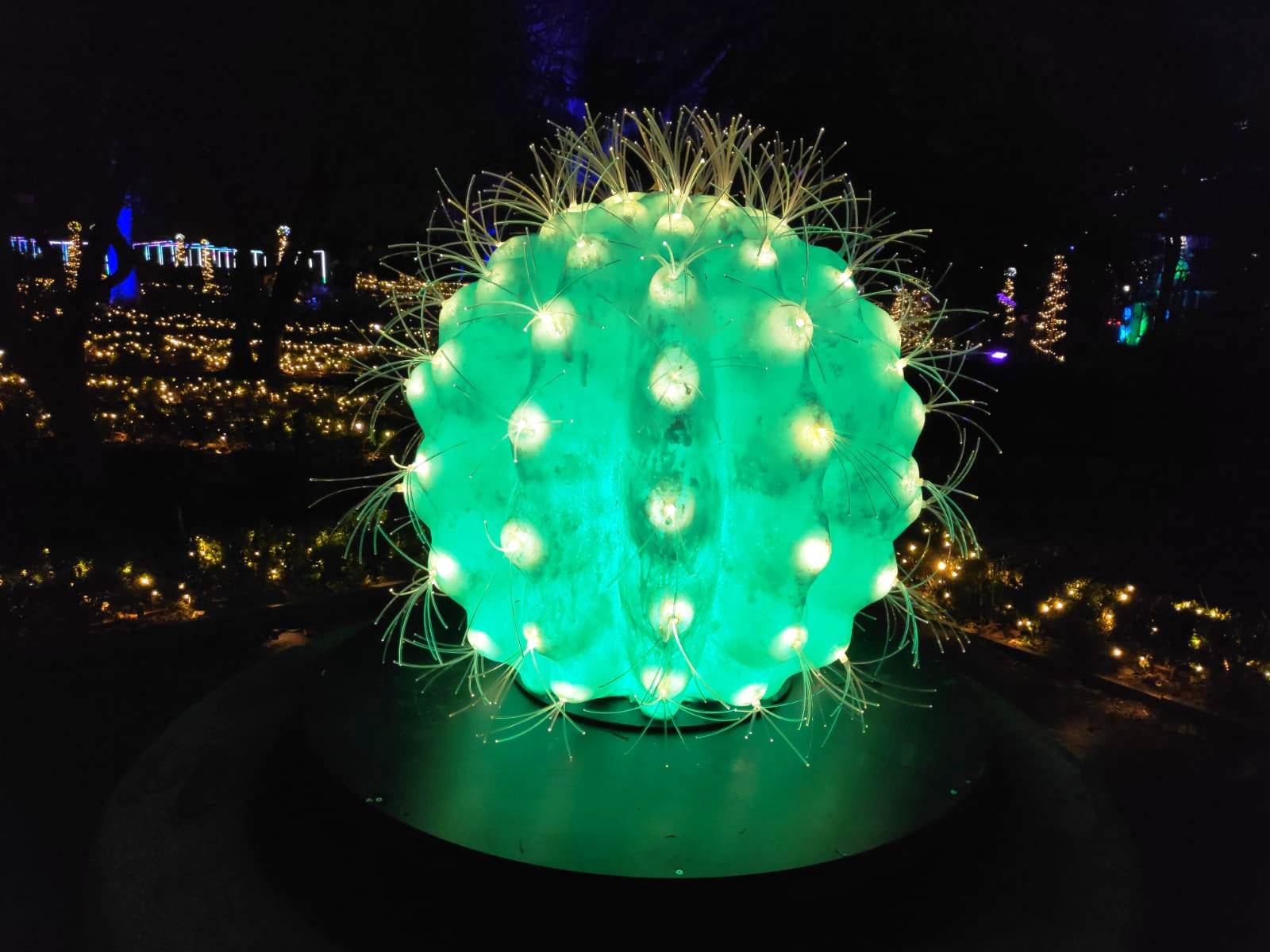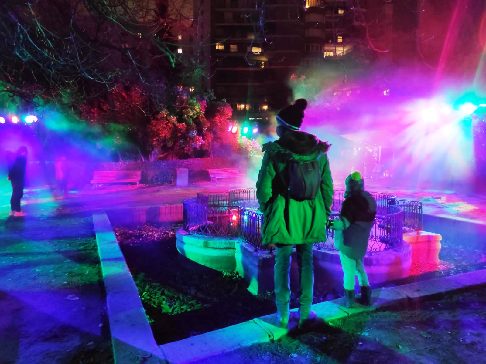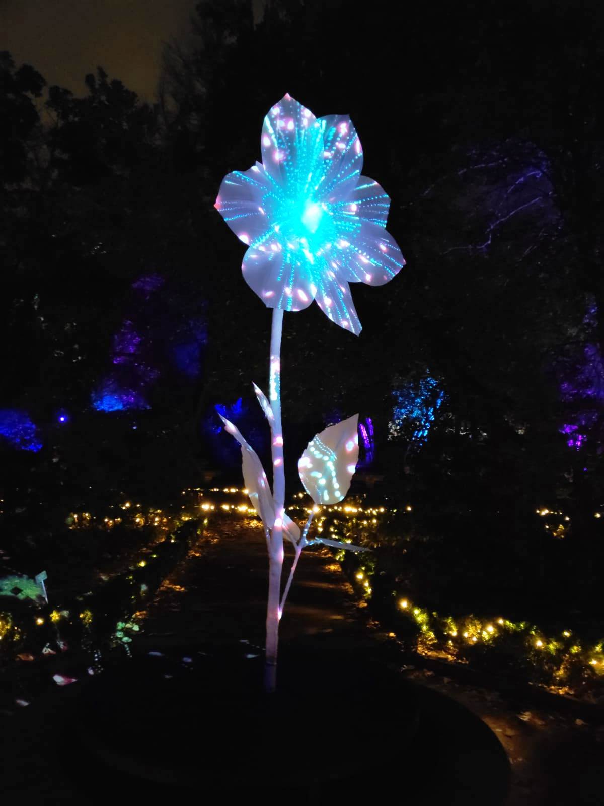En el centro de Madrid existe un recogido lugar donde todavía es posible disfrutar de la naturaleza y de la calma. El Real Jardín Botánico es una caja de sorpresas para quien se acerque a él, porque está repleto de hermosos rincones que contemplan más de dos siglos de historia. Además este singular espacio introduce al visitante en el conocimiento de una ciencia con largos años de tradición como es la Botánica. Las imágenes no tienen buena calidad, pues se han hecho con el móvil y de noche, pero da una idea general del espectáculo iluminado en navidad. |