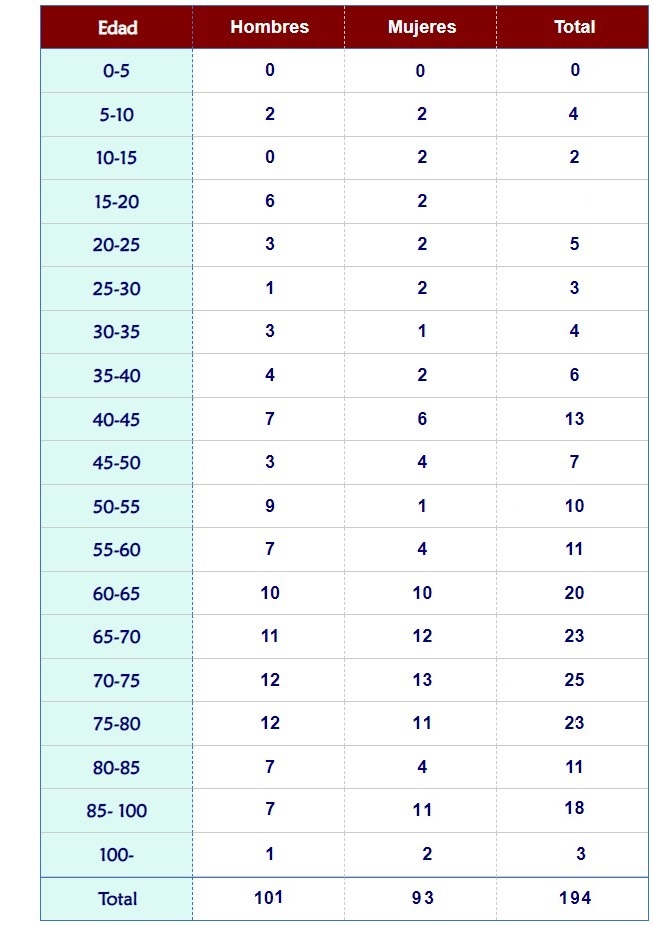 10 años atrás. La apreciación sin embargo no es acertada, ya que hay que tener en cuenta la diferencia entre la población censada y la residente. De los 194 habitantes censados no todos residen en el pueblo y solo aparecen por el mismo durante el verano o semana santa, lo que supone, que si el resto del año la población estable (que reside) en el municipio es mucho menor que el censado, En el invierno según estimaciones no oficiales, la población apenas alcanza las 80 personas. La falta de nacimientos en el término municipal, el envejecimiento de la población (118 son mayores de 65 años) y los naturales fallecimientos hacen que la tendencia en el municipio, en cuanto a demografía se refiere, se acentúe en plan negativo y la proyección demogáfica ad futuro sea alarmante... ver la España vaciada.... La población mayor de 65 años supone un 67,96% del tota (118), lo que nos indica un elevado porcentaje de envejecimiento del municipio. Me decía un abuelete, buen amigo y mejor persona: cuando faltemos los viejos que estamos ahora, aquí van a quedar 4 gatos. Es triste pero es verdad, es la tendencia de la mayoría de los municipios de España y poco se puede hacer por remediarlo. Según la estadística del INE sobre previsión demográfica en la zona rural, en Arrabalde para el año 2030 quedarán unos 90 habitantes empadronados. Residentes, teniendo en cuenta que un 44% viven en otras ciudades, echen cuentas. Según los últimos datos del INE, el numero total de habitantes empadronados (habitantes de derecho) en Arrabalde al día de hoy son 194, de los cuales 93 son mujeres y 101 hombres. Los habitantes de hecho (residentes) sería notablemente inferior. La siguiente tabla corresponde a la evolución demográfica que ha sufrido el pueblo desde el 1857 al día de hoy