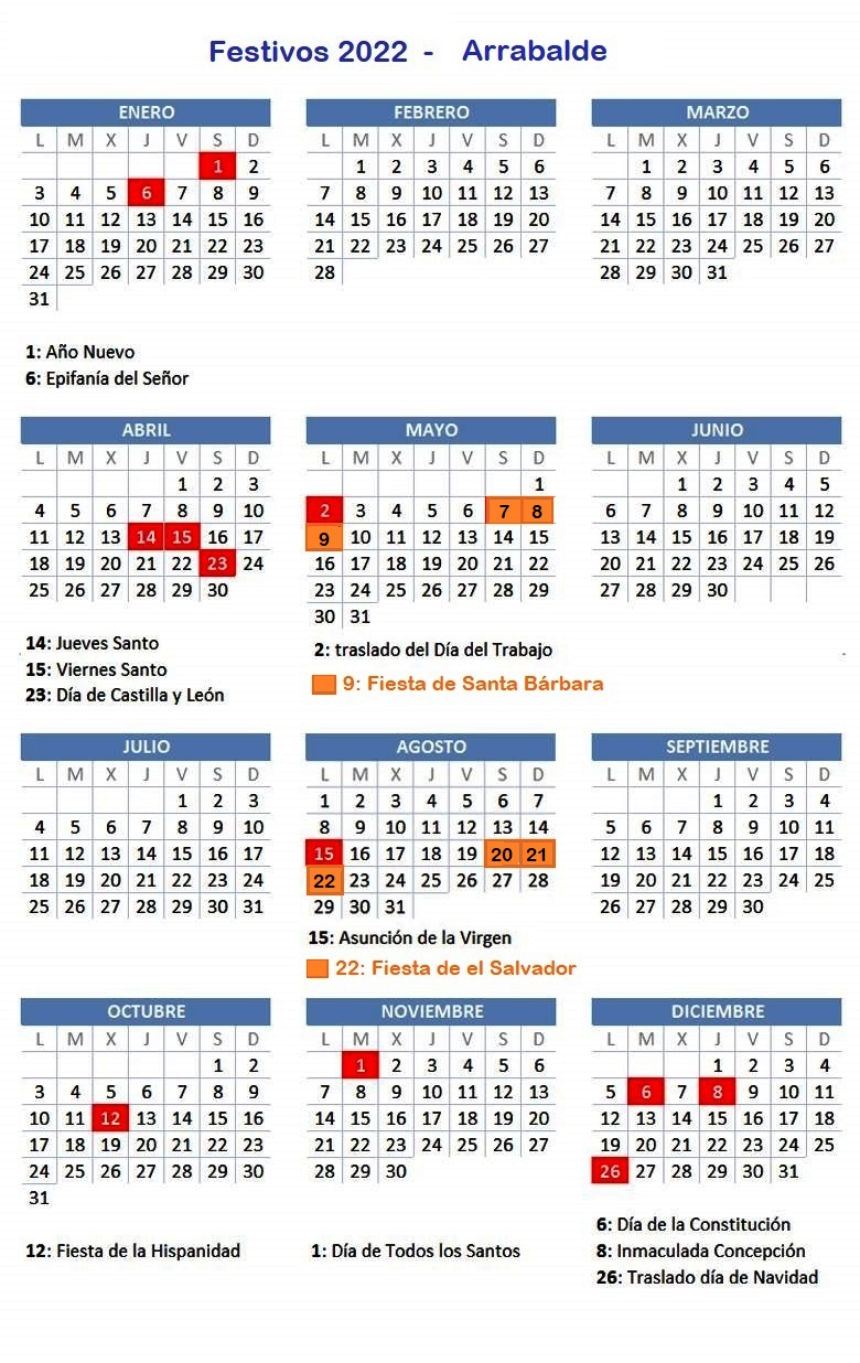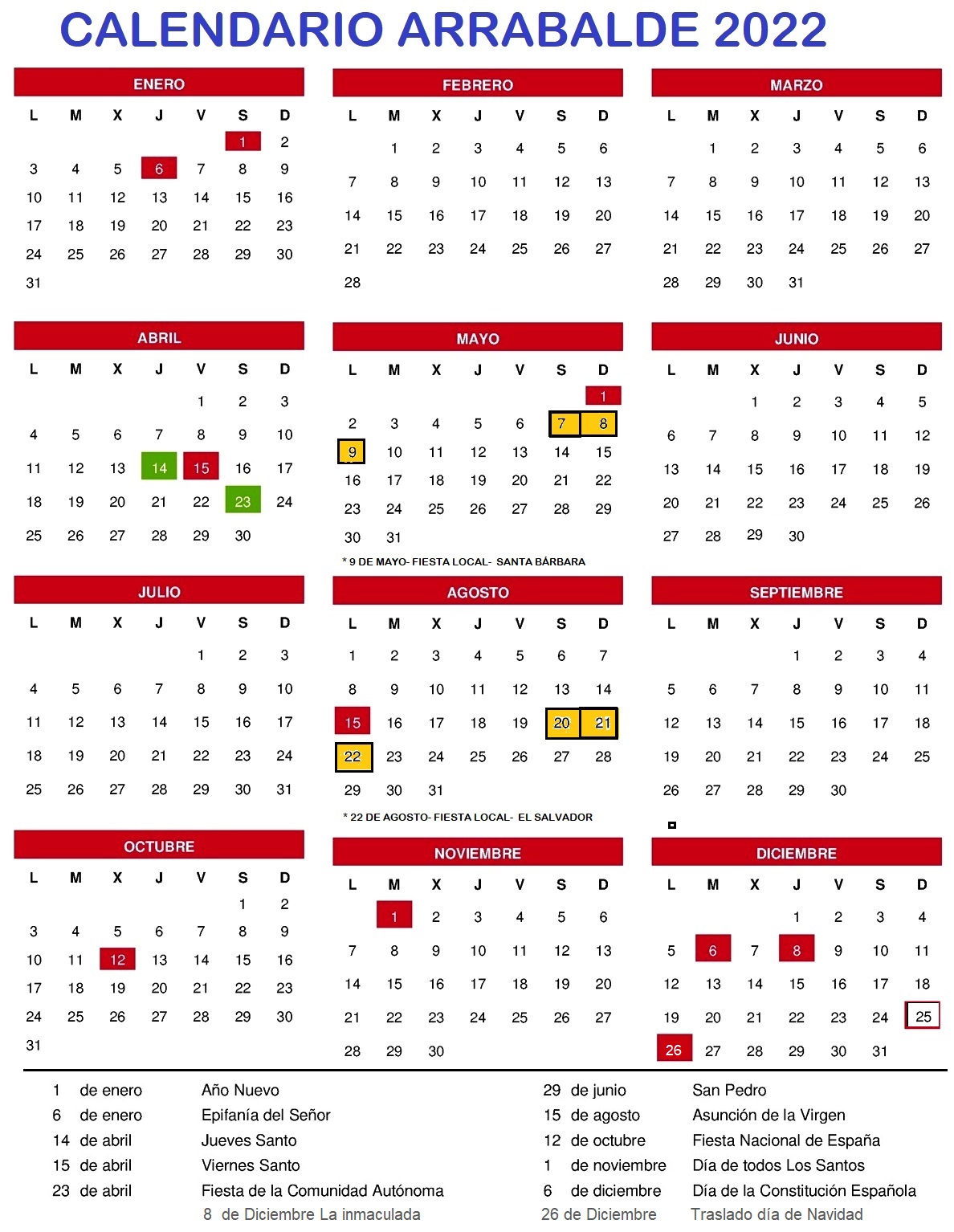 CALENDARIO LABORAL PARA ARRABALDE 2022 calendario para imprimir