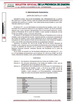 ************************************************************************ La Junta de de Castilla León disuelve las Cortes y convoca Elecciones para el día 13 de febrero del 2022
