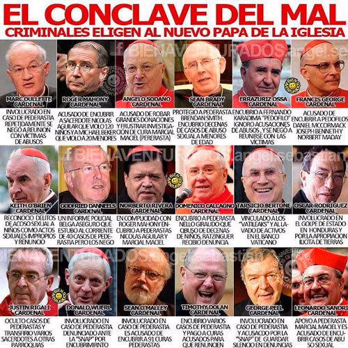 de diócesis. En España, oficialmente, el problema de pederastia en la Iglesia católica no es conocido en toda su dimensión, debido a la opacidad, que supuso el respaldo del régimen al Iglesia durante mas de 40 años, donde los casos de pederastia y abusos que se producían, se trataban en el el interior del seno de la Iglesia y no trascendían al exterior. Sin embargo a la luz de los últimos informes, los casos que van apareciendo y se informa de ellos, superan en varios miles. Después de la opacidad en que nos sumió el régimen respecto a la verdadera historia de la Iglesia y las pegas y obstáculos que la Jerarquía eclesiástica ha puesto para llevar a cabo las investigaciones, hoy a la luz de el conocimiento, la investigación y las denuncias de muchos afectados, nos permite tener una información amplia y fidedigna de lo que ha escondido la Iglesia a lo largo de sus 2000 años de historia y, en muchos casos nos horroriza, de ahí que su autoridad moral, sus dogmas y su credibilidad, se estén diluyendo como un castillo de arena. Un escalofriante informe de mas de 2500 páginas asevera que las víctimas de abusos sexuales cometidos por parte de religiosos, en el seno de la Iglesia podría superar el millón de casos en el mundo. Solo en Francia desde el año 1950 al actual, se conocen mas de 300.000 casos y el informe Sauve informa de 256.000 mas. Estados Unidos ha confeccionado una lista de 7000 sacerdotes acusados de abuso sexual, y así, país tras país. Un verdadero horror. Y esto señores solo es la punta del Iceberg. Hoy con las iglesias abandonadas (solo refugio de algunas viejecitas beatas y de la derechota rancia de este país) y las catedrales vacías (excepto como centros turísticos para admirar el arte), la religión y la Iglesia carece de interés alguno para la mayoría de la sociedad, que ha dejado de creer en algo que se evidencia pura ficción y cuento, utilizados mediaticamente por el clero, para mantener sumiso y esclavo al pueblo humilde y para vivir como verdaderos sátrapas. Ver: https://www.20minutos.es/minuteca/pederastia-en-la-iglesia/