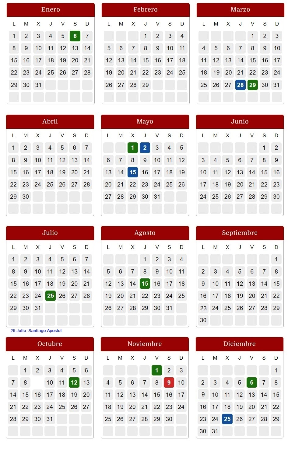 CALENDARIO DE FIESTAS LABORALES EN CASTILLA Y LEÓN PARA EL AÑO 2024La Junta de Castilla y León ha establecido el calendario de fiestas para 2024 con el apoyo unánime de los agentes económicos y sociales, en atención al sistema productivo, las demandas sociales y el respeto a las fiestas tradicionales de Castilla y León. Las fiestas laborales, con carácter retribuido y no recuperable en el ámbito de la Comunidad para el próximo año son: