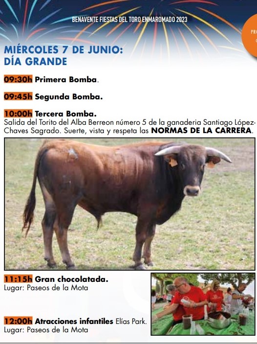 Fiestas del Toro enmaromado en Benavente Han dado comienzo las Fiestas del Toro enmaromado en Benavente que se celebran del 5 al 11 de Junio. Puedes ver el Programa en la 1ª imagen