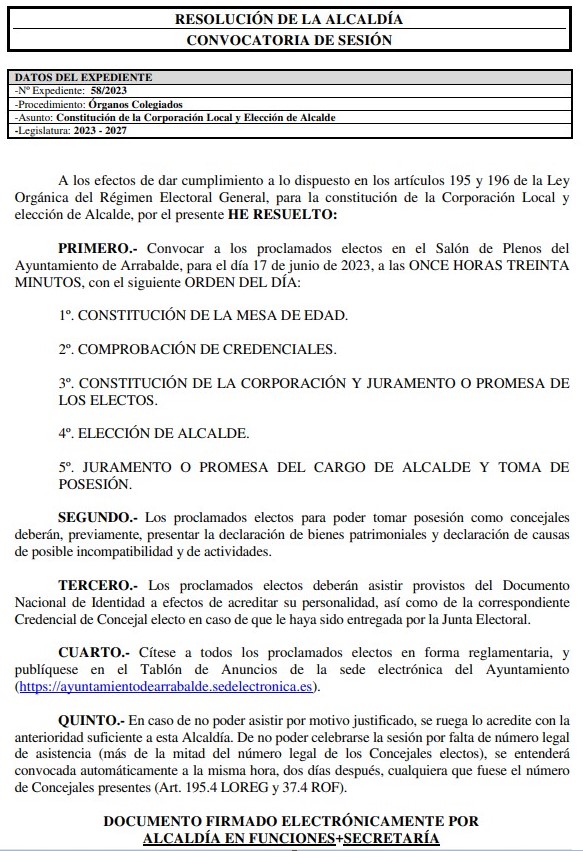 Elecciones Generales Listas Censo Electoral El Ayuntamiento de Arrabalde expone mediante bando y a través de su sede electrónica las listas electorales a fin de que cada cual compruebe las mismas y opte o no por la reclamación en el plazo estipulado.