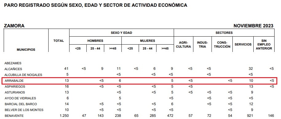 Actualizando datos del paro Datos del Paro y afiliados a la seguridad social en Arrabalde relativos al mes de Noviembre Los Según los datos del SEPE el número de parados en Arrabalde ha subido en 2 en relación con el mes anterior. Como siempre las personas mayores de 45 años son el colectivo mas afectado. Los afiliados a la seguridad social no varian respecto al mes anterior que siguen en 20.