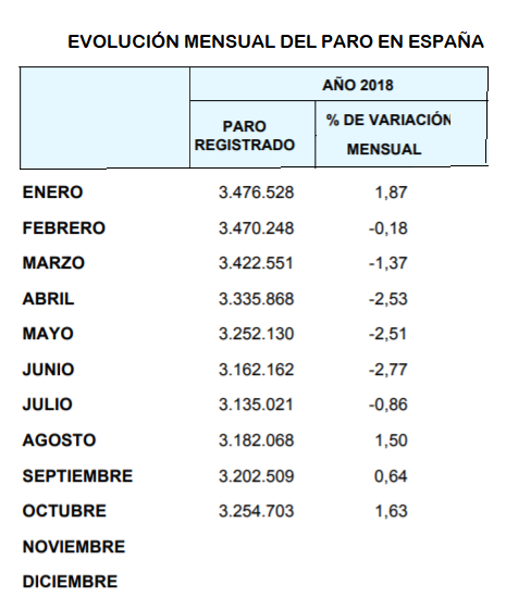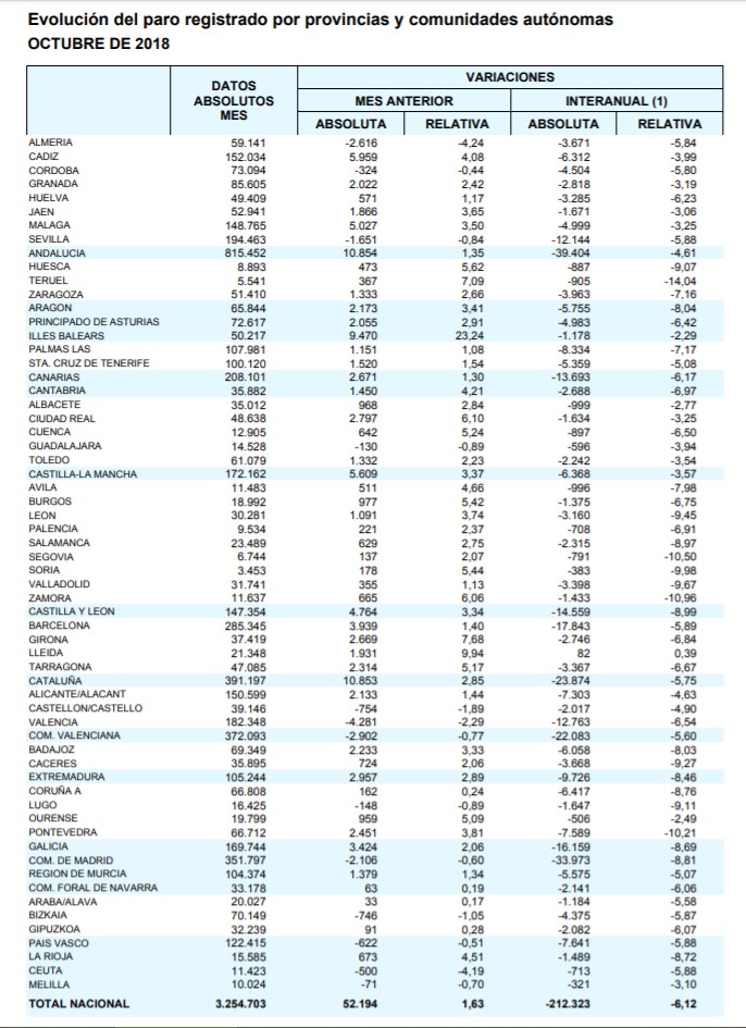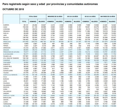 paro mes de Noviembre 2018 - municipios provincia de Zamora