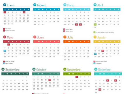 Calendario completo de Arrabalde que incluye todos los festivos a nivel local, Año 2018