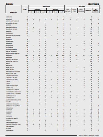 Detalle del número de parados en los municipios de España, donde se incluyen los municipios de la Provincia de Zamora.