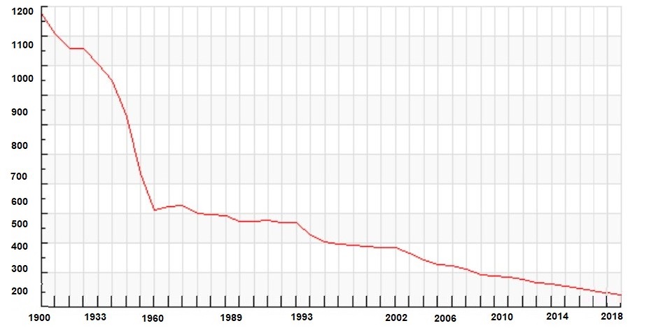 La evolución demográfica en Arrabalde según el gráfico, continúa al igual que en la mayoría de los pequeños pueblos, la deriva descendente de forma alarmante.. ver: datos población.htm ; censo desde 1842.htm Evolución de la población en Arrabalde desde 1900 al 2018
