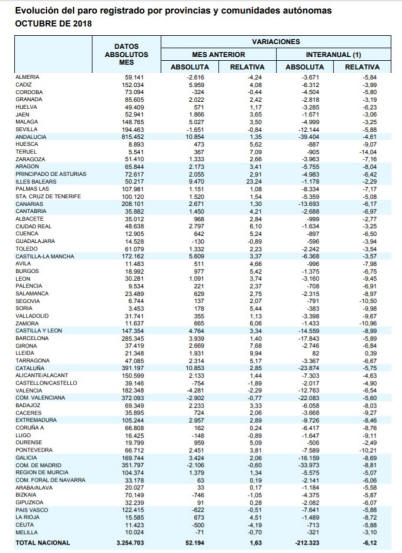 Datos actualizados del Paro y afiliación a la seg. social en Arrabalde correspondiente al mes de Octubre