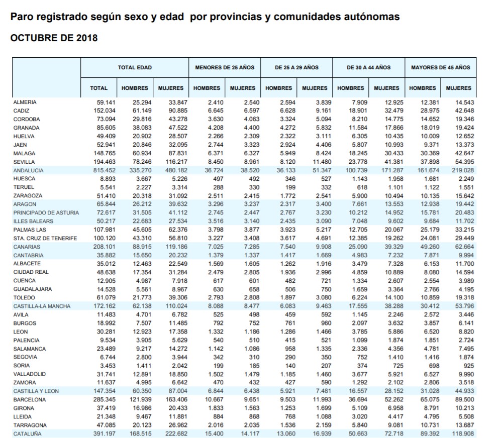 DATOS PARO: Evolución del paro en España a nivel nacional, autonómico, provincial y municipal, por sectores, sexo y edad al día de la fecha