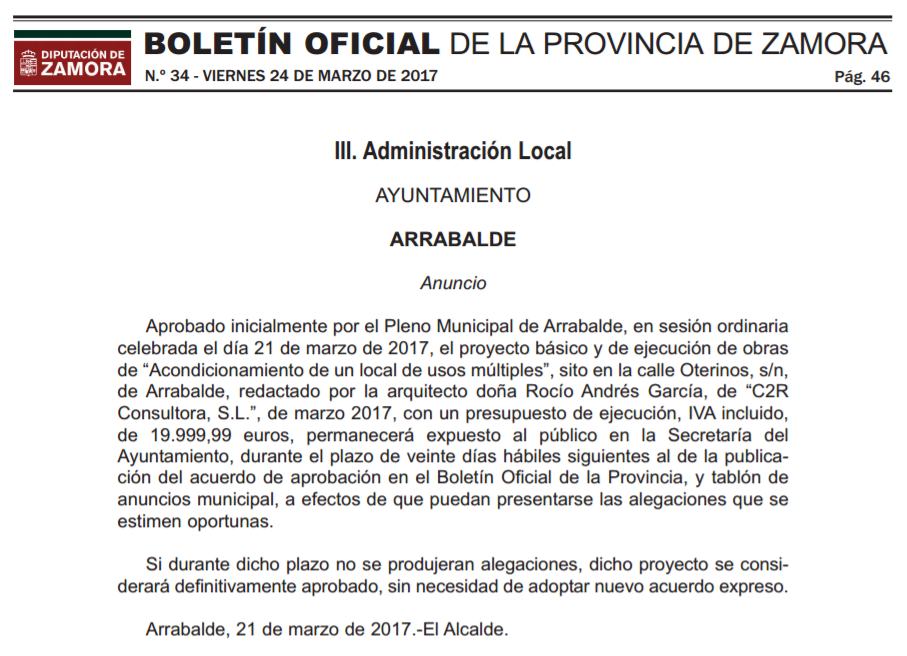Ayuntamiento de Arrabalde, ha aprobado inicialmente el Presupuesto