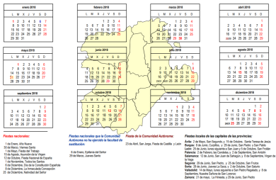Ya se han publicado oficialmente los calendarios laborales del 2018 de todas las comunidades, donde se incluyen los festivos de cada una de ellas. Hoy os muestro los de Castilla- León y el de la Comunidad de Madrid así como las fiestas de todas las comunidades en toda España.