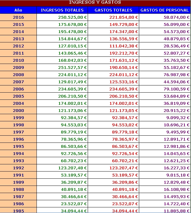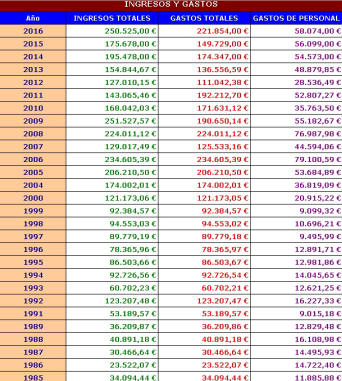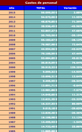 (reflejando los gastos de personal), desde el año 1985 al 2016. Pica en