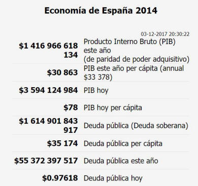 DATOS: Las cifras reales de la situación económica y social al 1 de Septiembre de 2017 en España, eran las siguientes:
