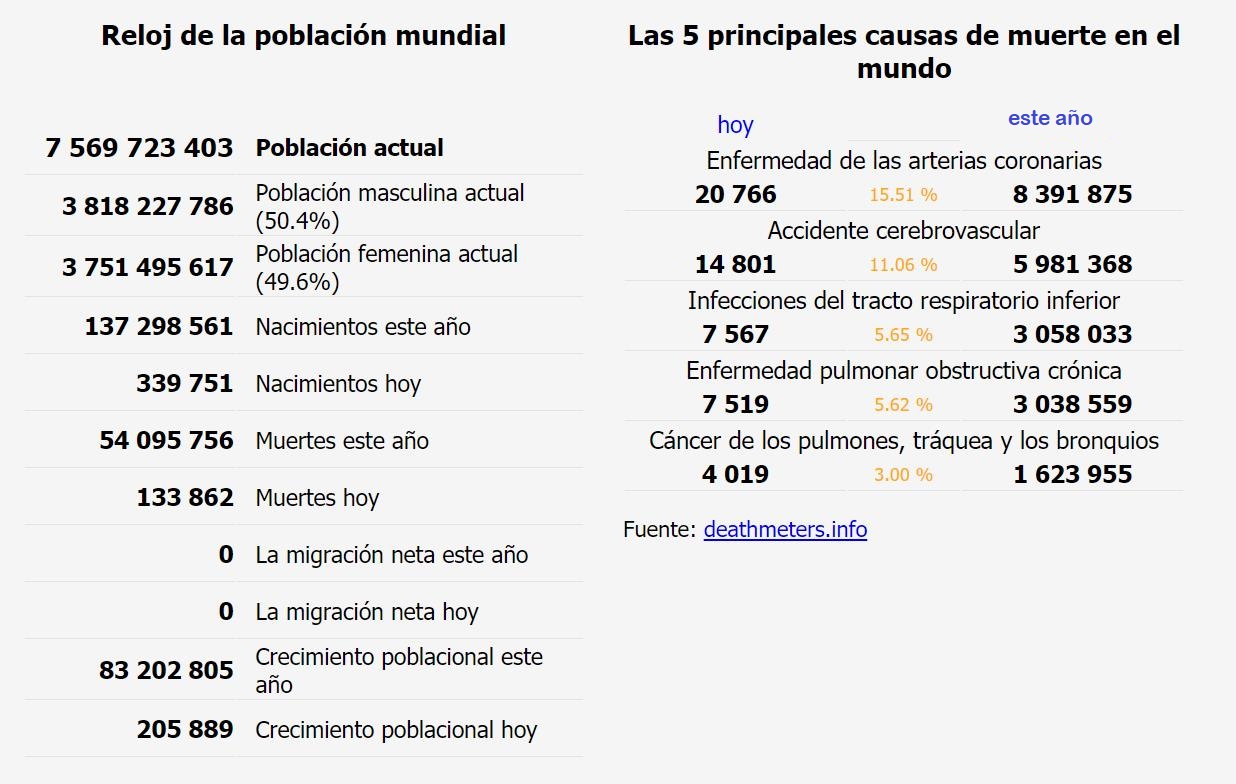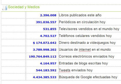 Datos curiosos: Hoy una muestra mediante gráficos que miden el reloj de la evolución sobre la economía, la población en España. y la población mundial. También puedes ver el grafico de los datos globales sobre población, economía, salud, alimentos, medio ambiente, etc. etc.