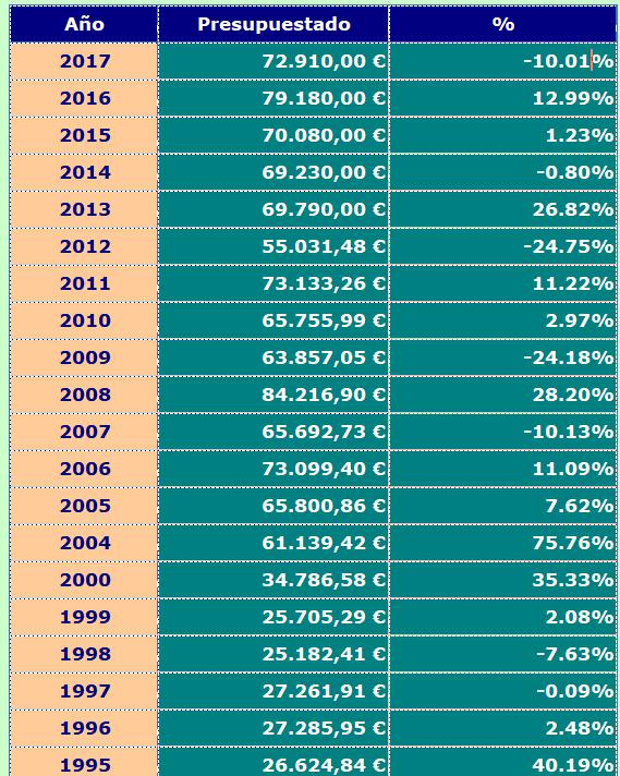 a los 766 euros, la cantidad mas baja de toda la Comunidad Autónoma, que