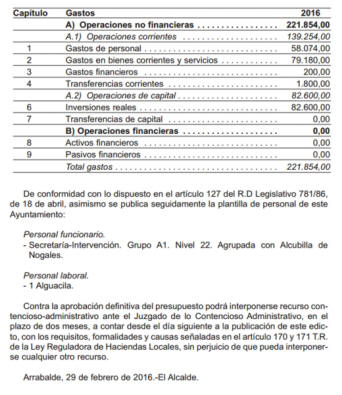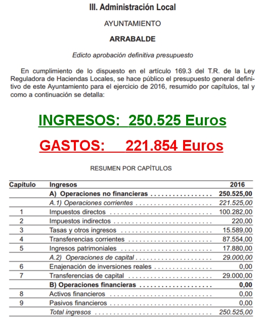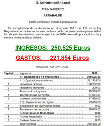 los presupuestos generales del Ayuntamiento de Arrabalde para el año