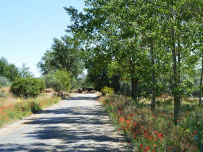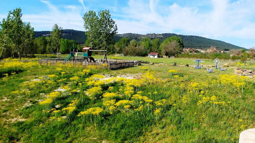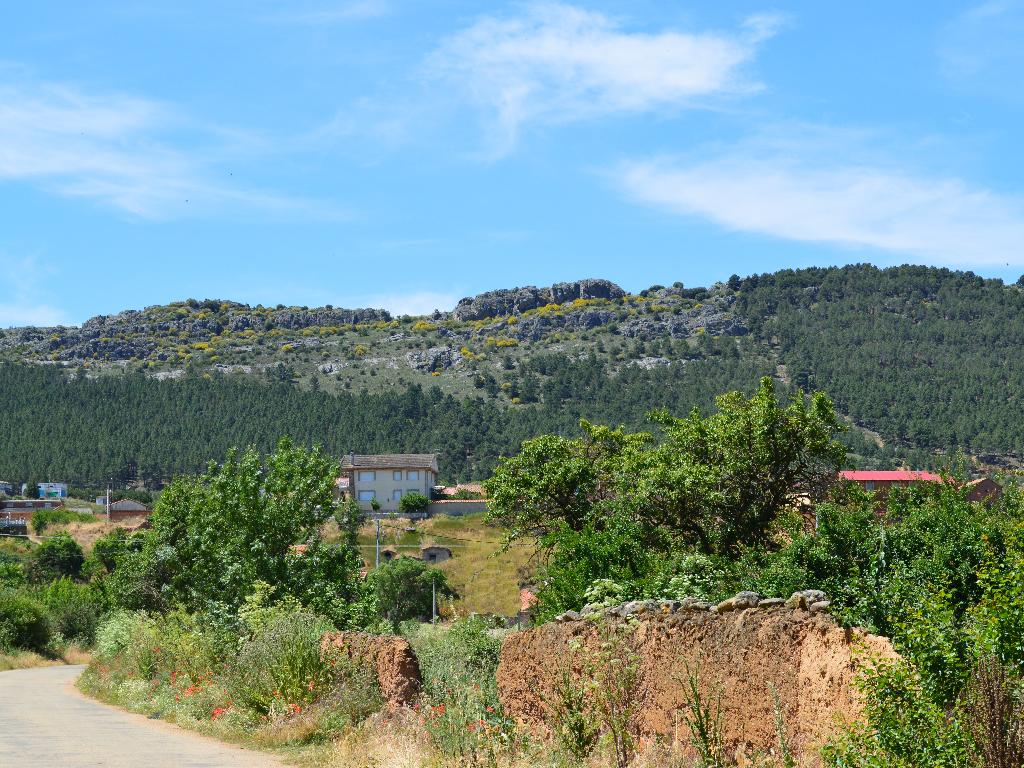 otras fotos: el paseo hasta la obra, panorámica del pueblo con la sierra al fondo y campo de futbol